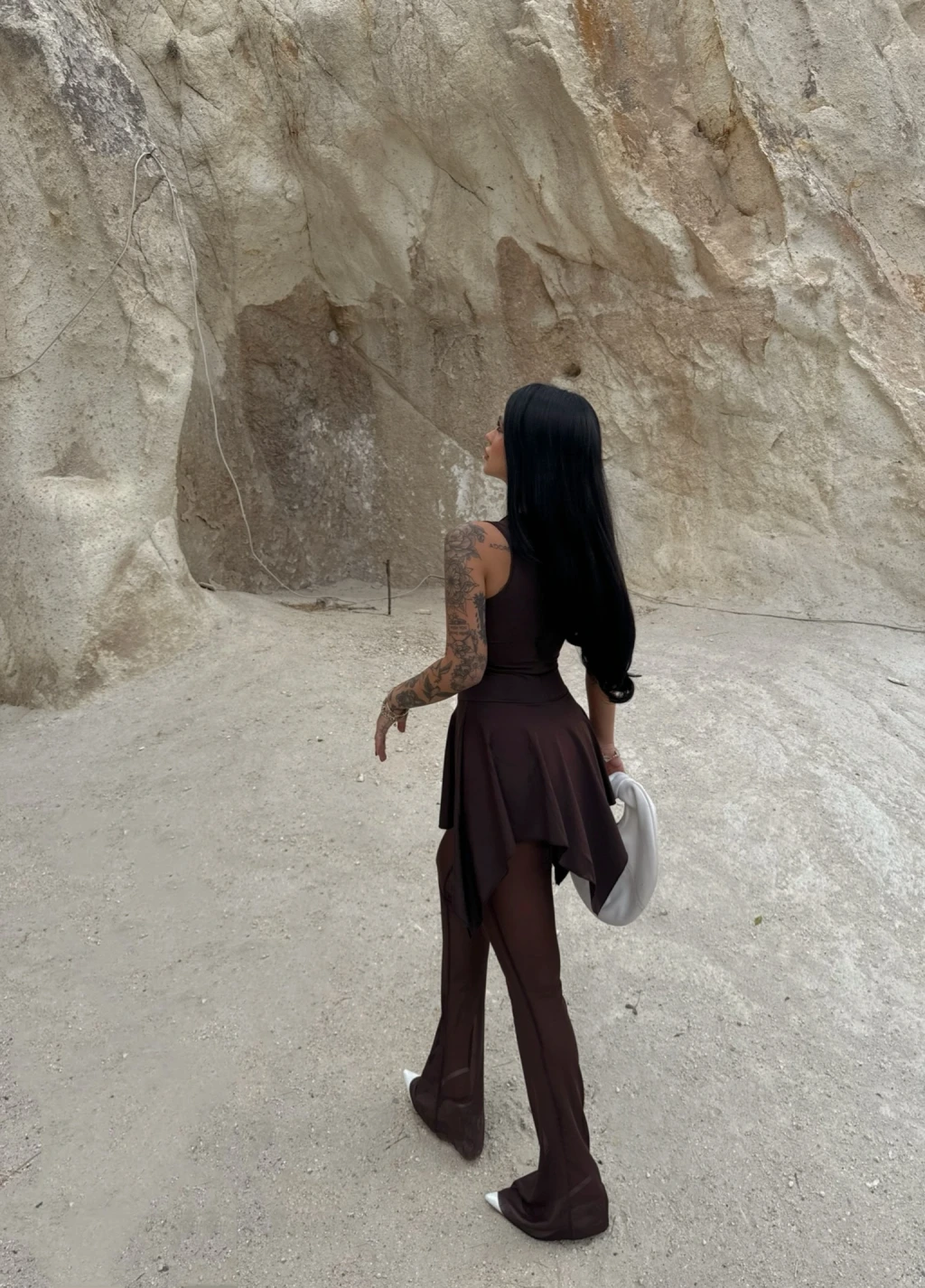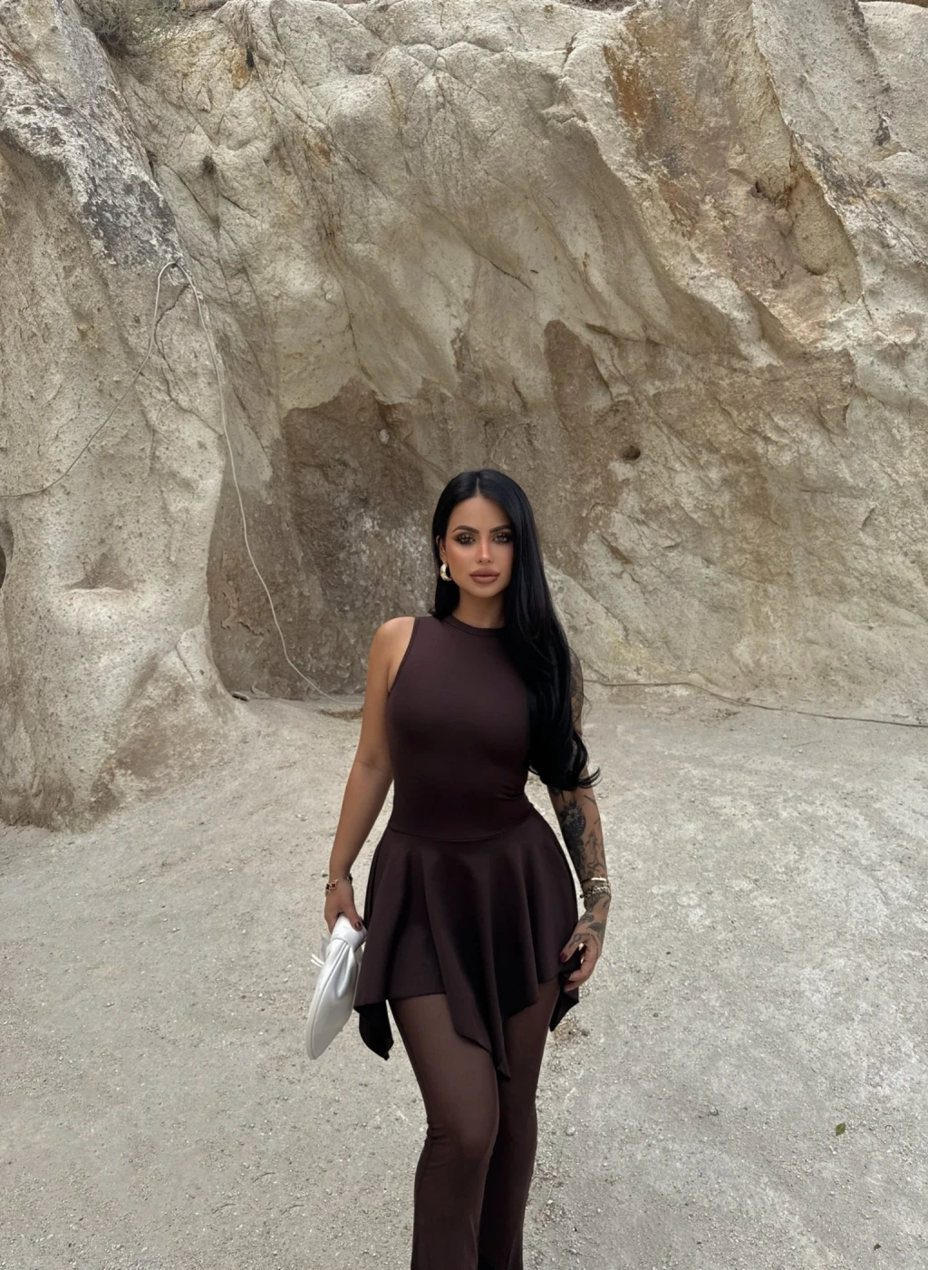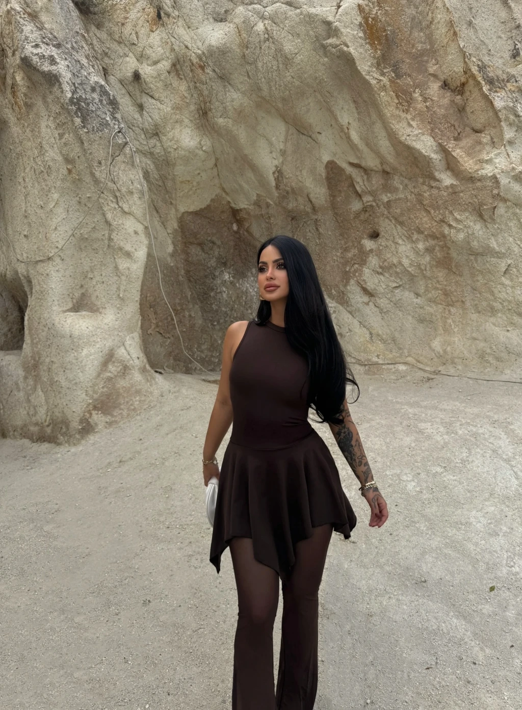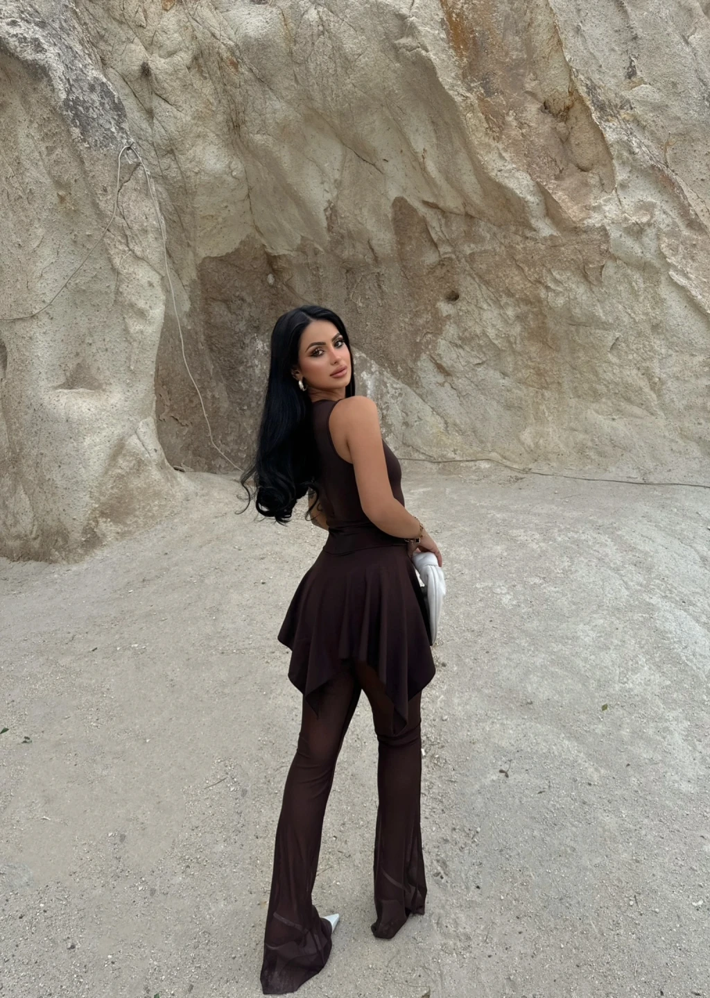 - Vücuda oturan üst kısmı ve geniş tül pantolonuyla fark yaratan bir tasarıma sahiptir.