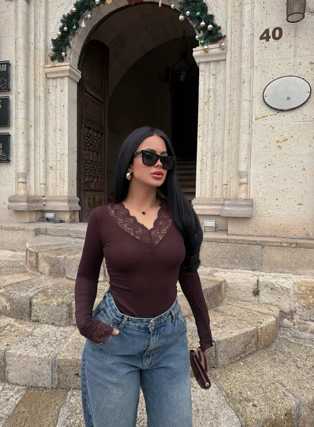 - Yaka ve kol kısımlarında yer alan güpür detayları, bluza feminen ve şık bir hava katıyor.