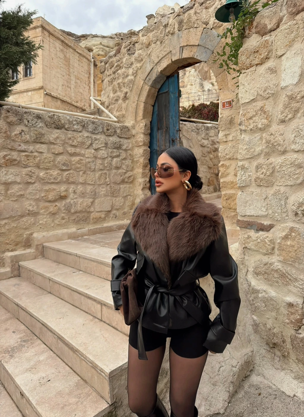 Kırmızı Butik markasının şıklığı ve kalitesiyle öne çıkan Yakası Kürklü Deri Mont, soğuk havalarda sizi sıcacık tutacak bir seçenektir.