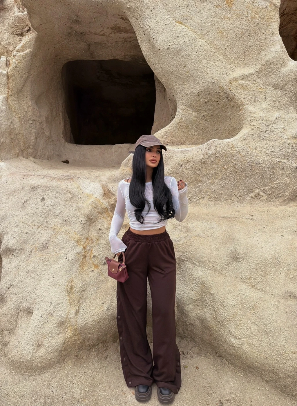 - Geniş paça detayı ve palazzo kesimi ile hareket özgürlüğü sunar.