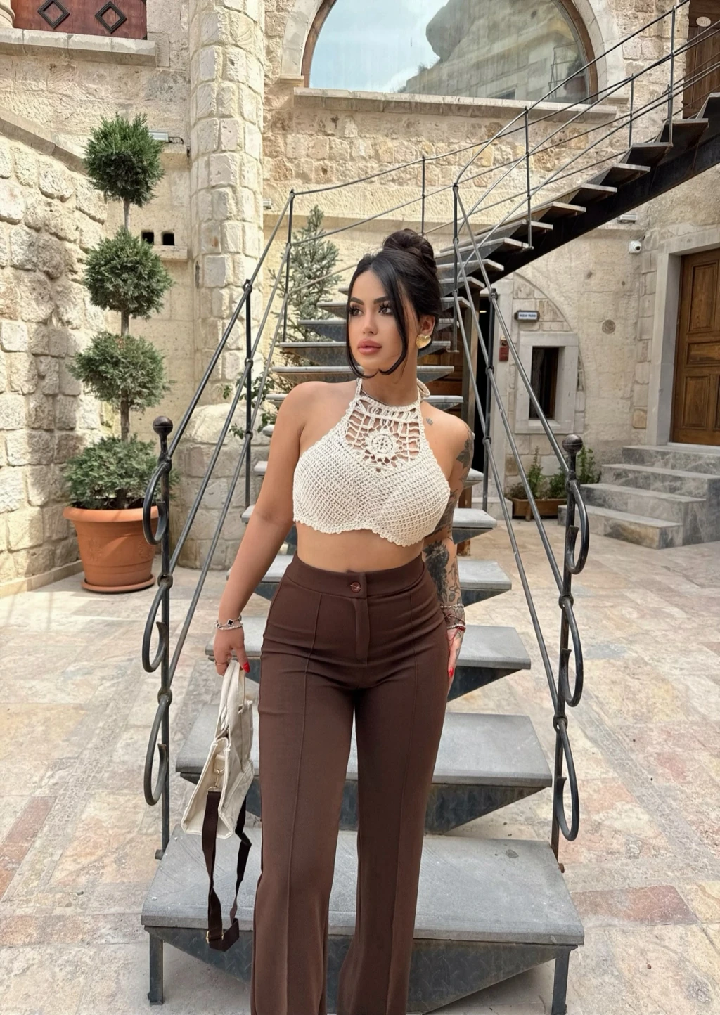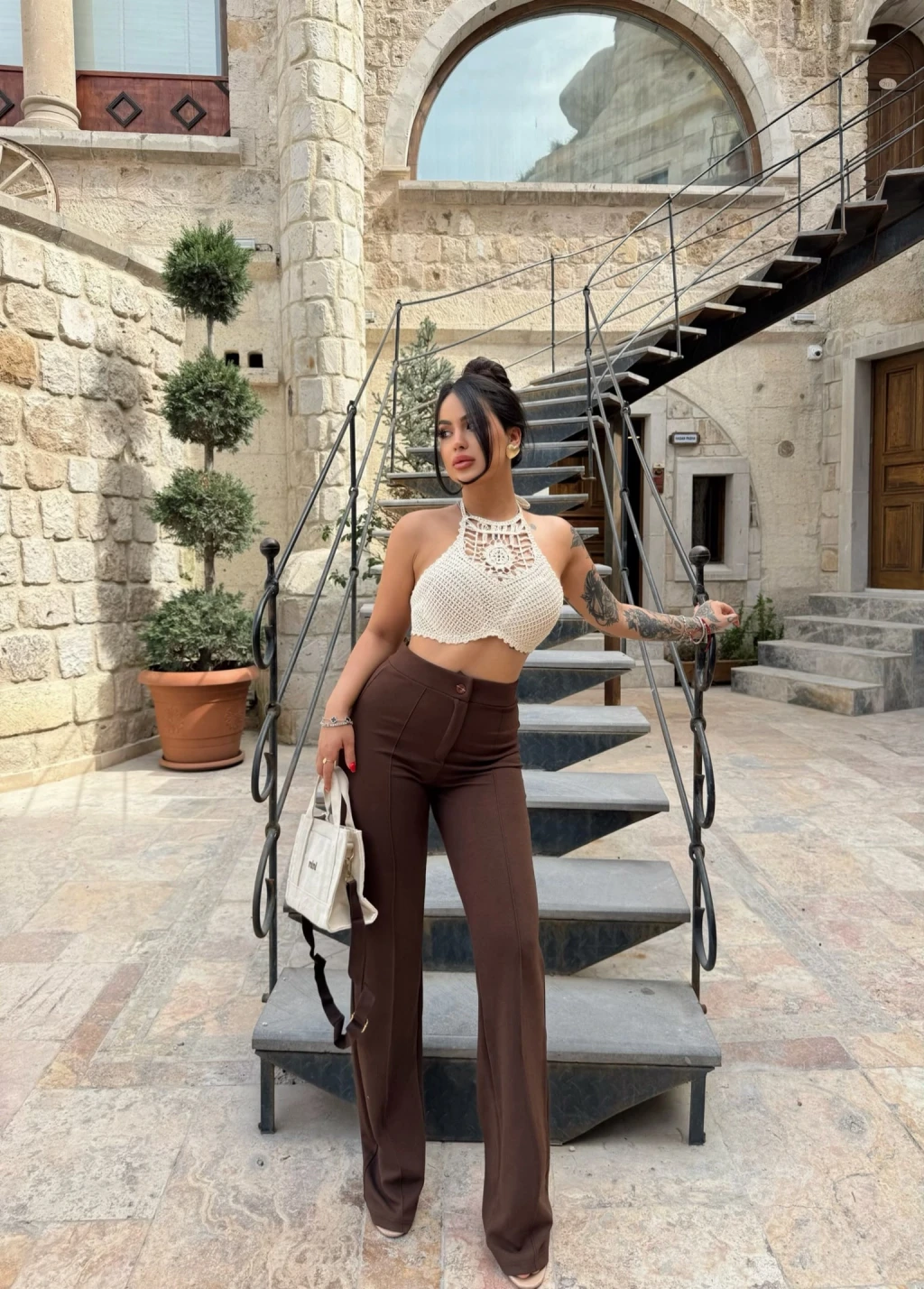 İnce bel kısmı ve geniş paçasıyla vücudu saran bu pantolon, her beden tipine uyum sağlar.
