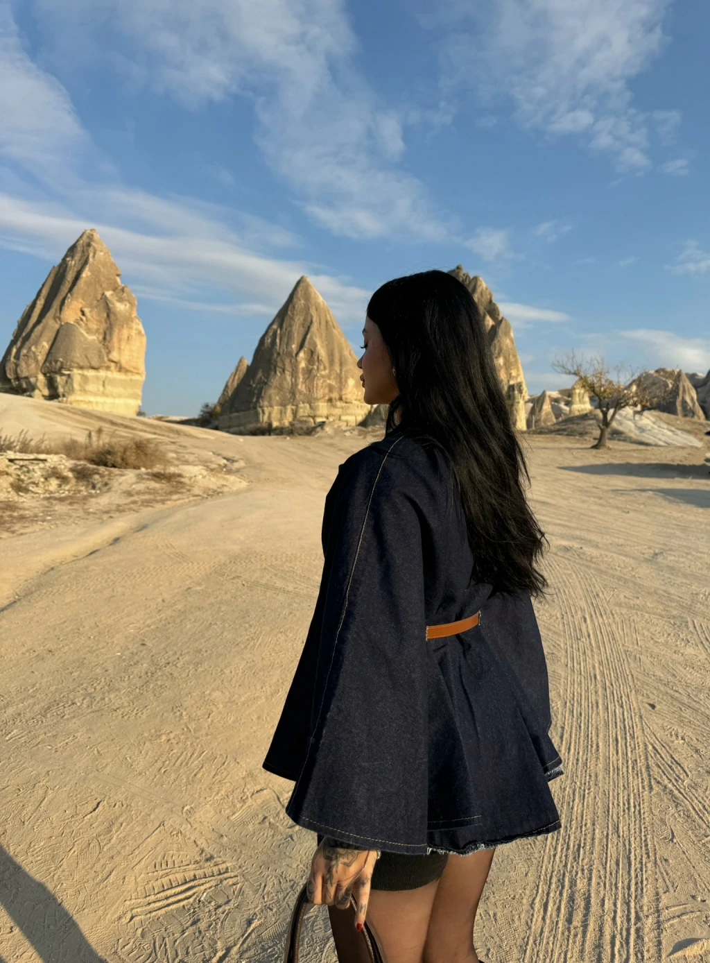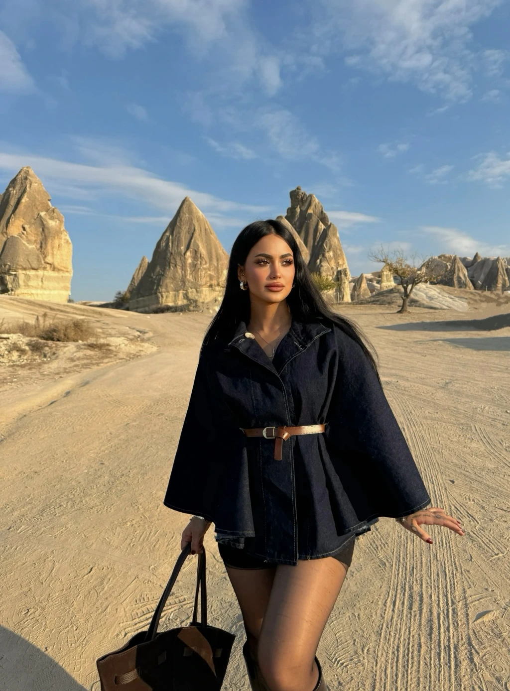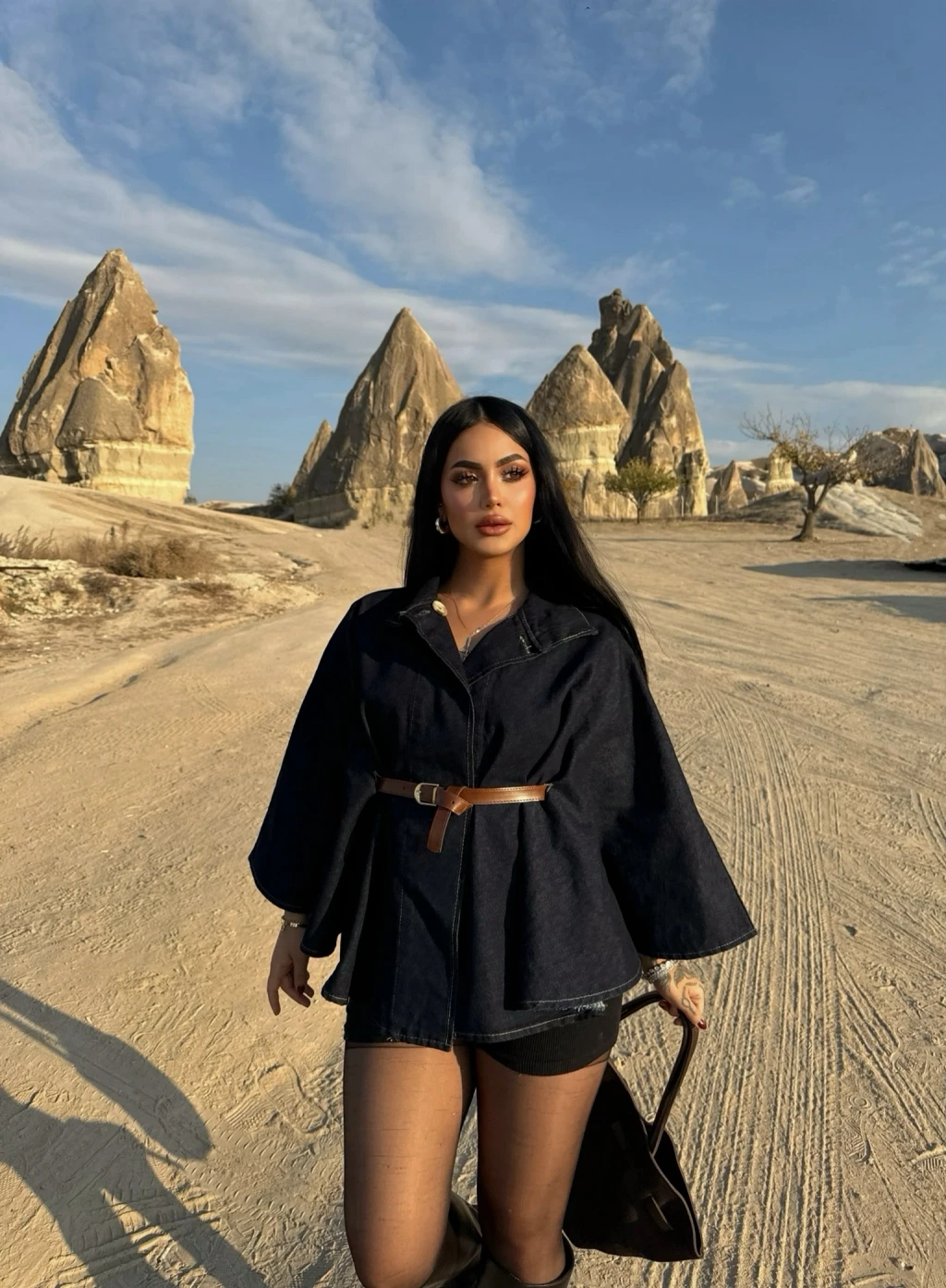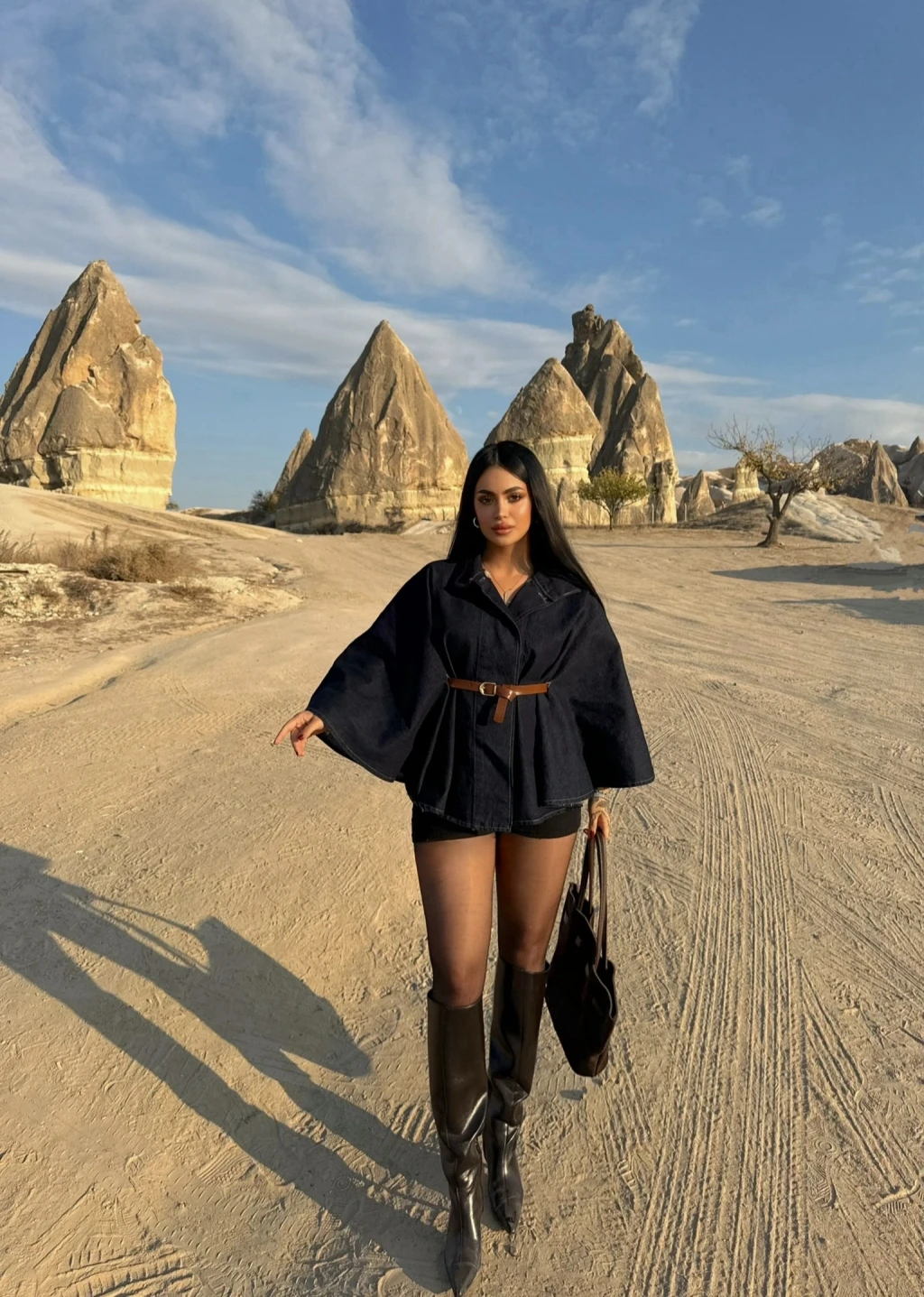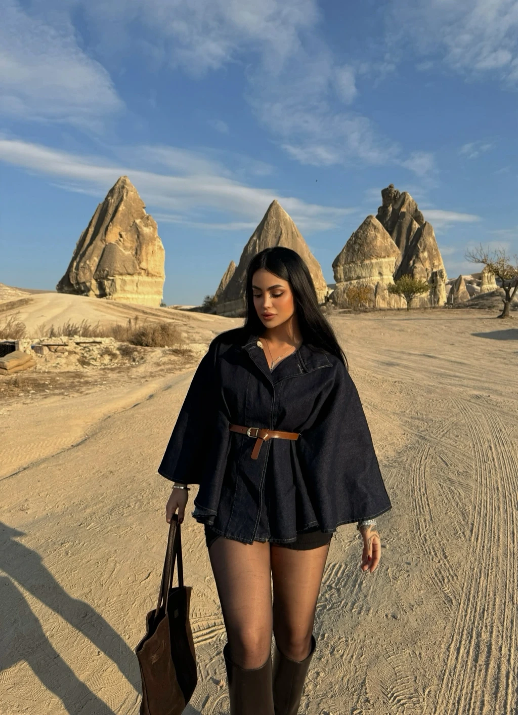 Kırmızı Butik Kemerli Denim Panço, şıklığı ve rahatlığı bir arada sunar. Sıra dışı tasarımı ile her kombini tamamlayacak bir parçadır.