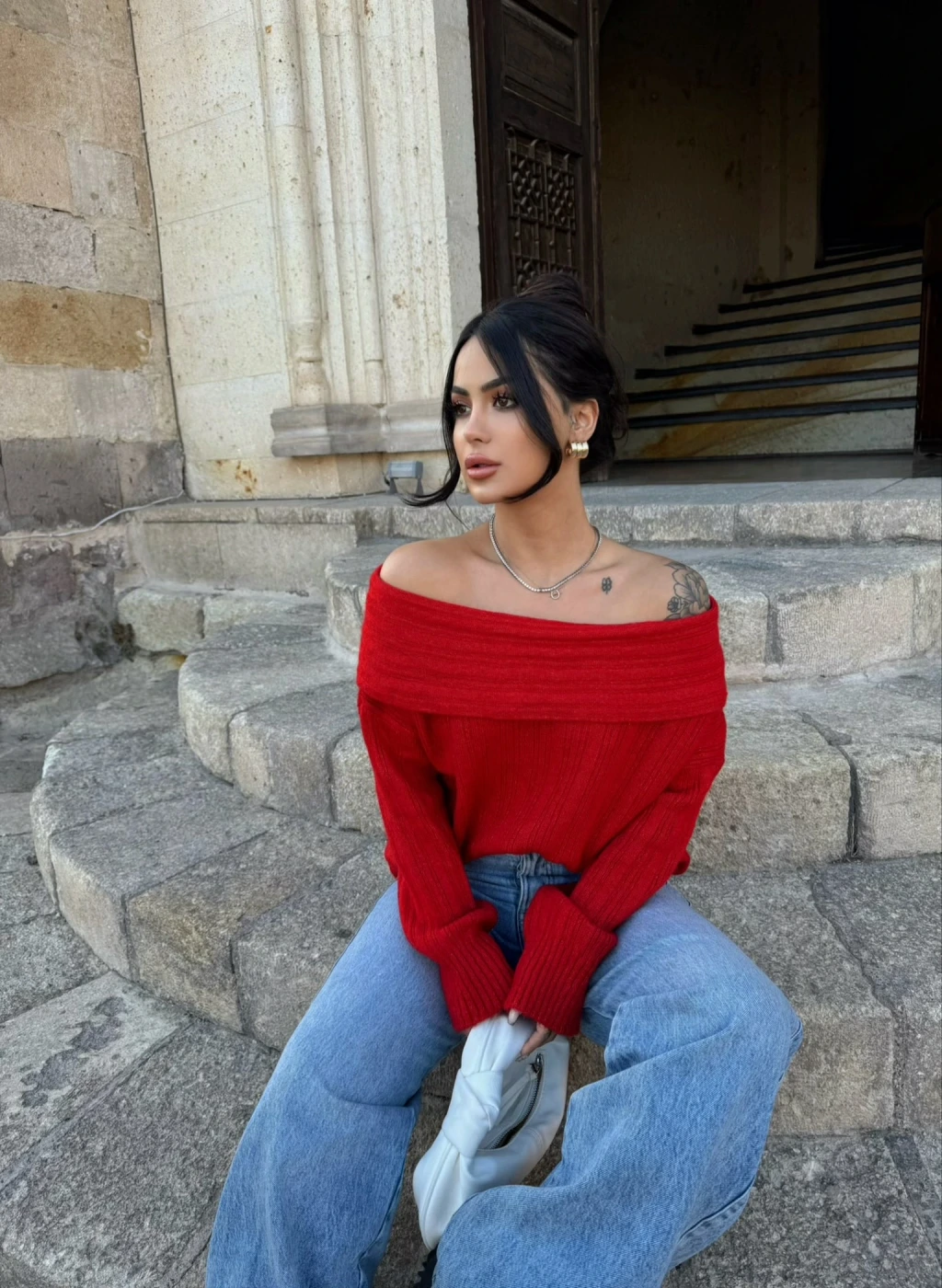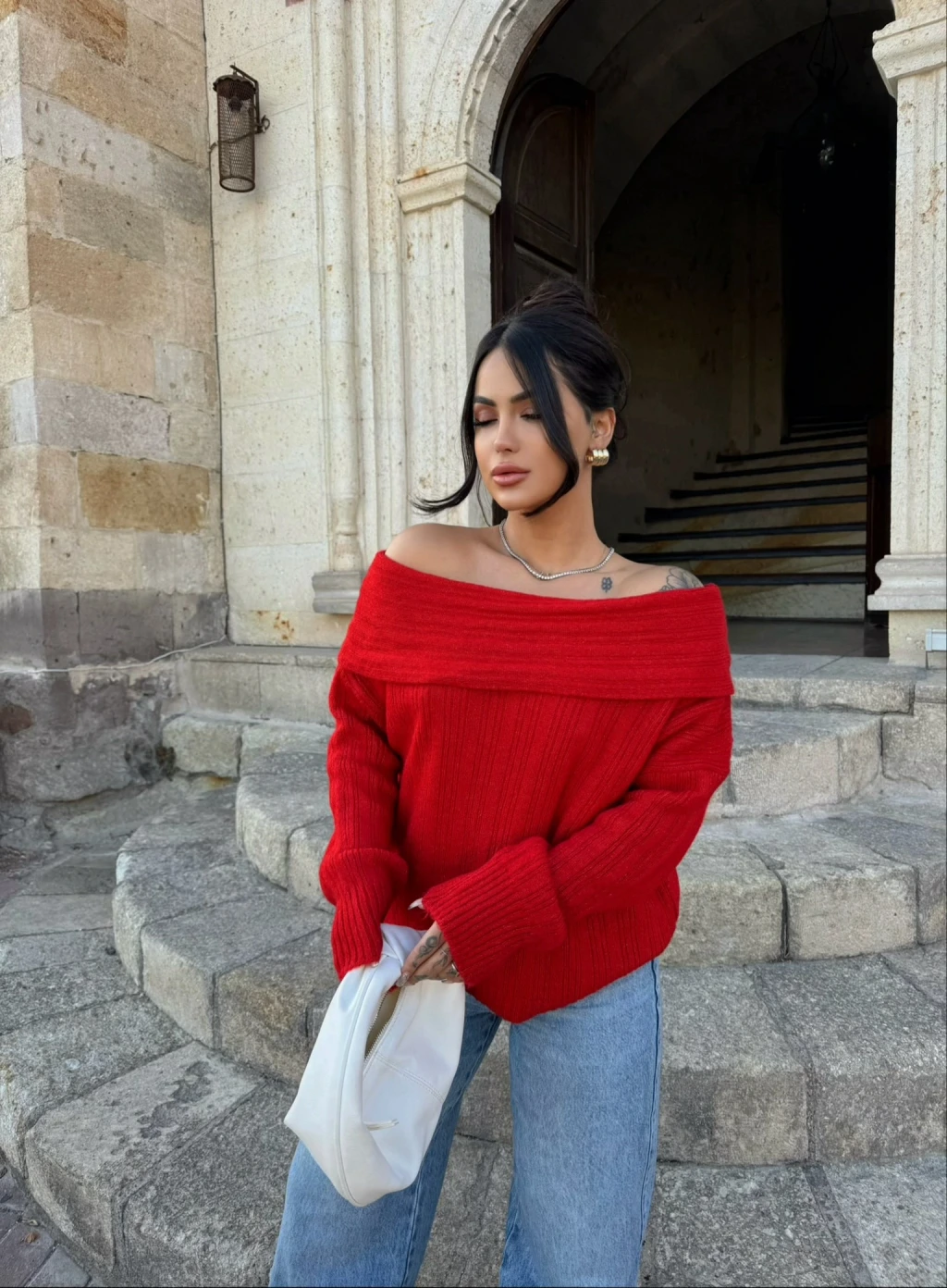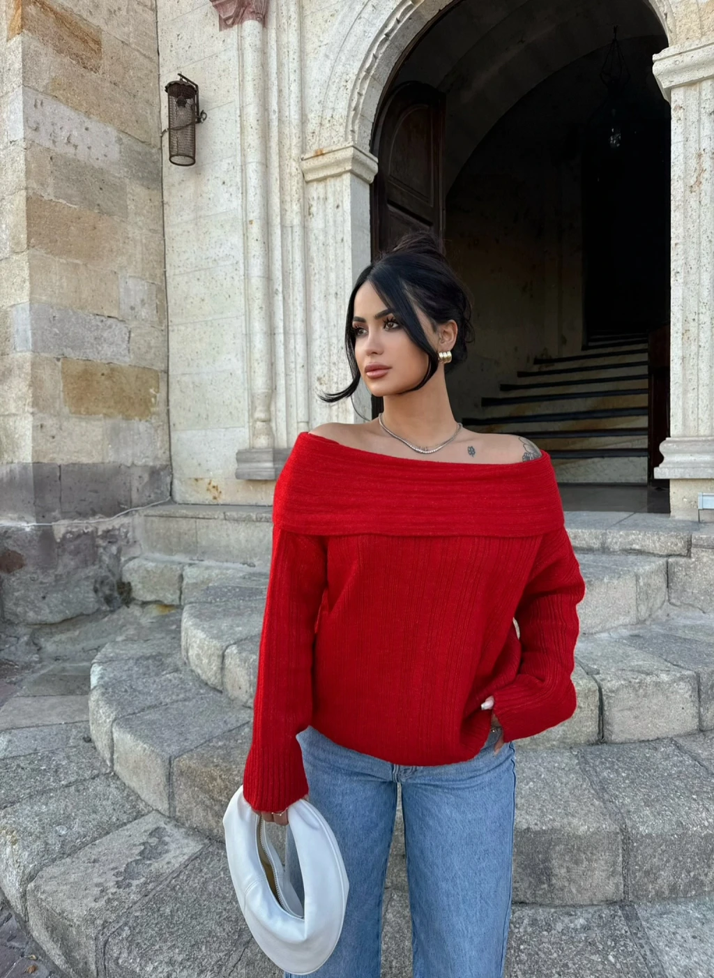 Kırmızı Butik'in Madonna Yaka Şardonlu Kazak ile şıklığı ve rahatlığı bir arada bulabilirsiniz.