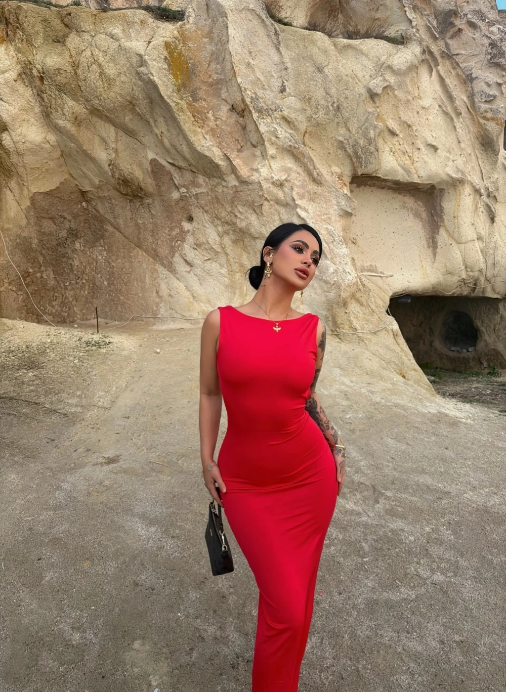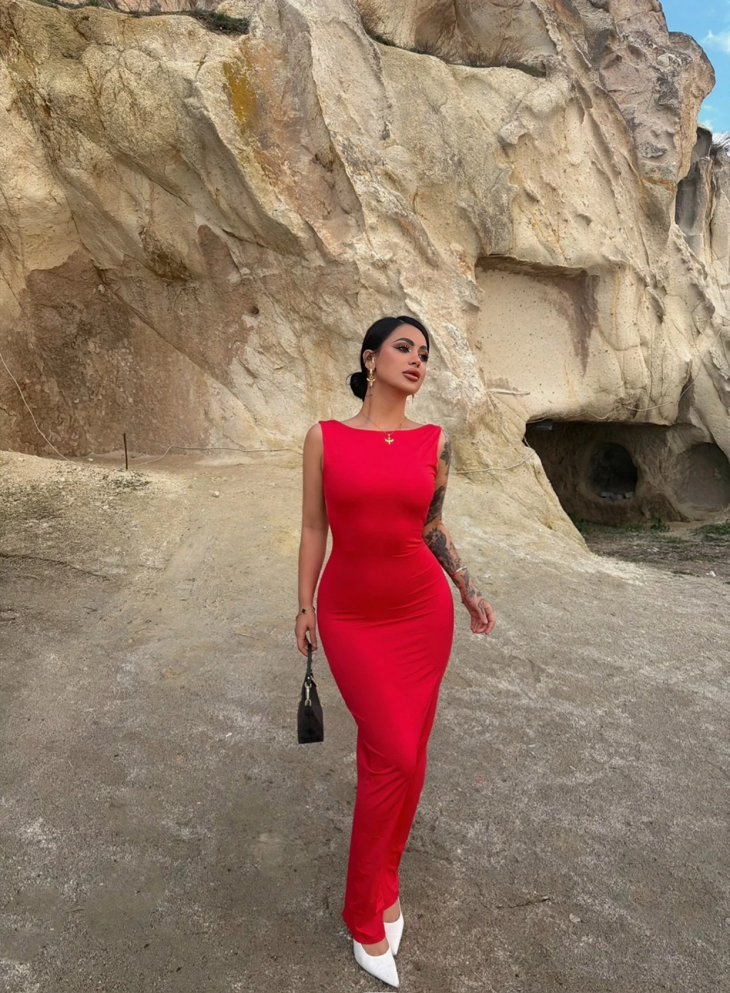 Şıklık ve rahatlığı bir arada sunan Sırt Açık Long Elbise, Kırmızı Butik'in özel tasarımıdır. Bu şık elbise, hem casual kullanıma hem de özel günlerde tercih edebileceğiniz bir parçadır.