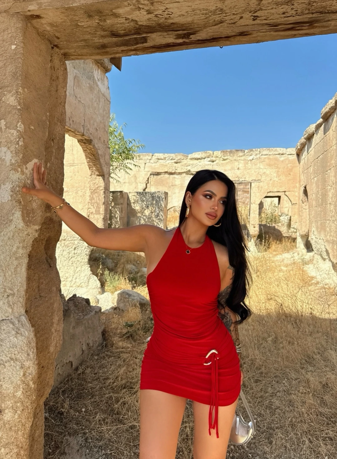 Şıklık ve tarzı bir arada sunan Kırmızı Butik Siyah Yanı Tokalı Büzgülü Elbise ile tanışın.