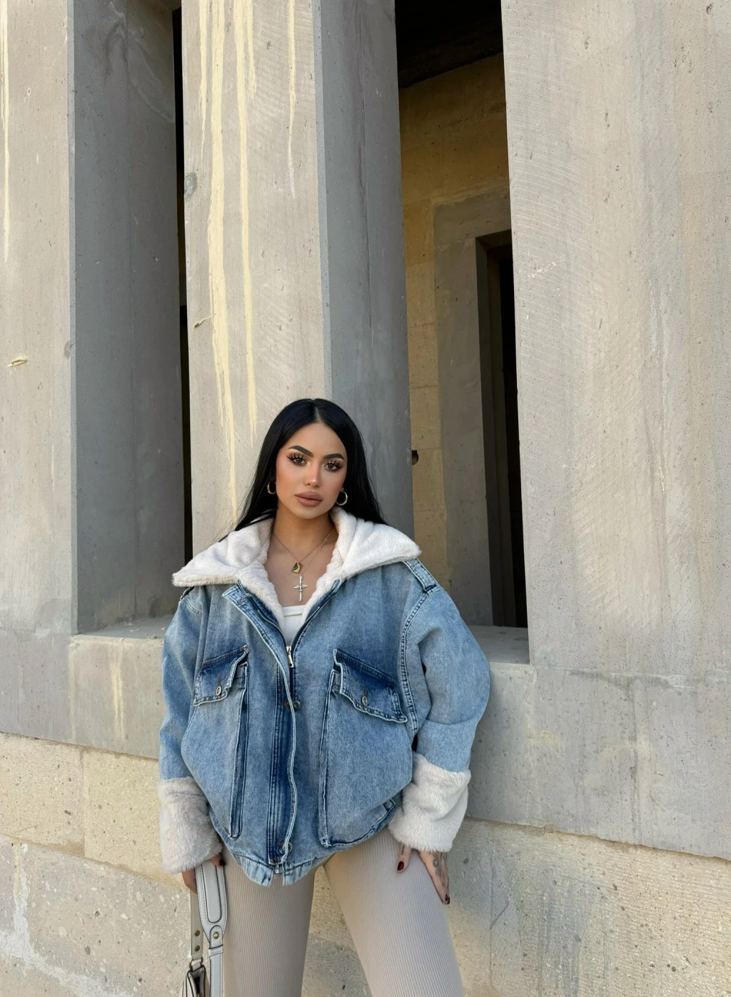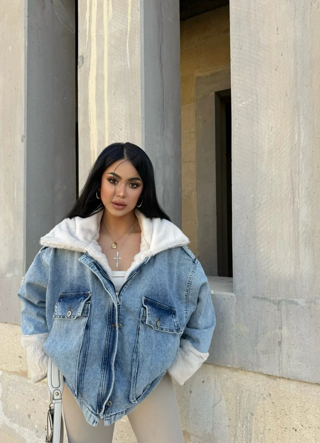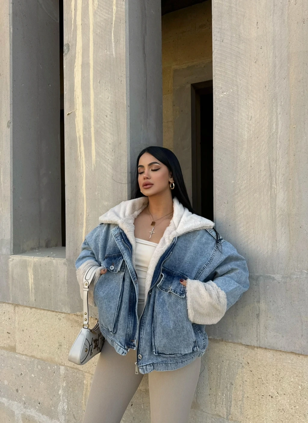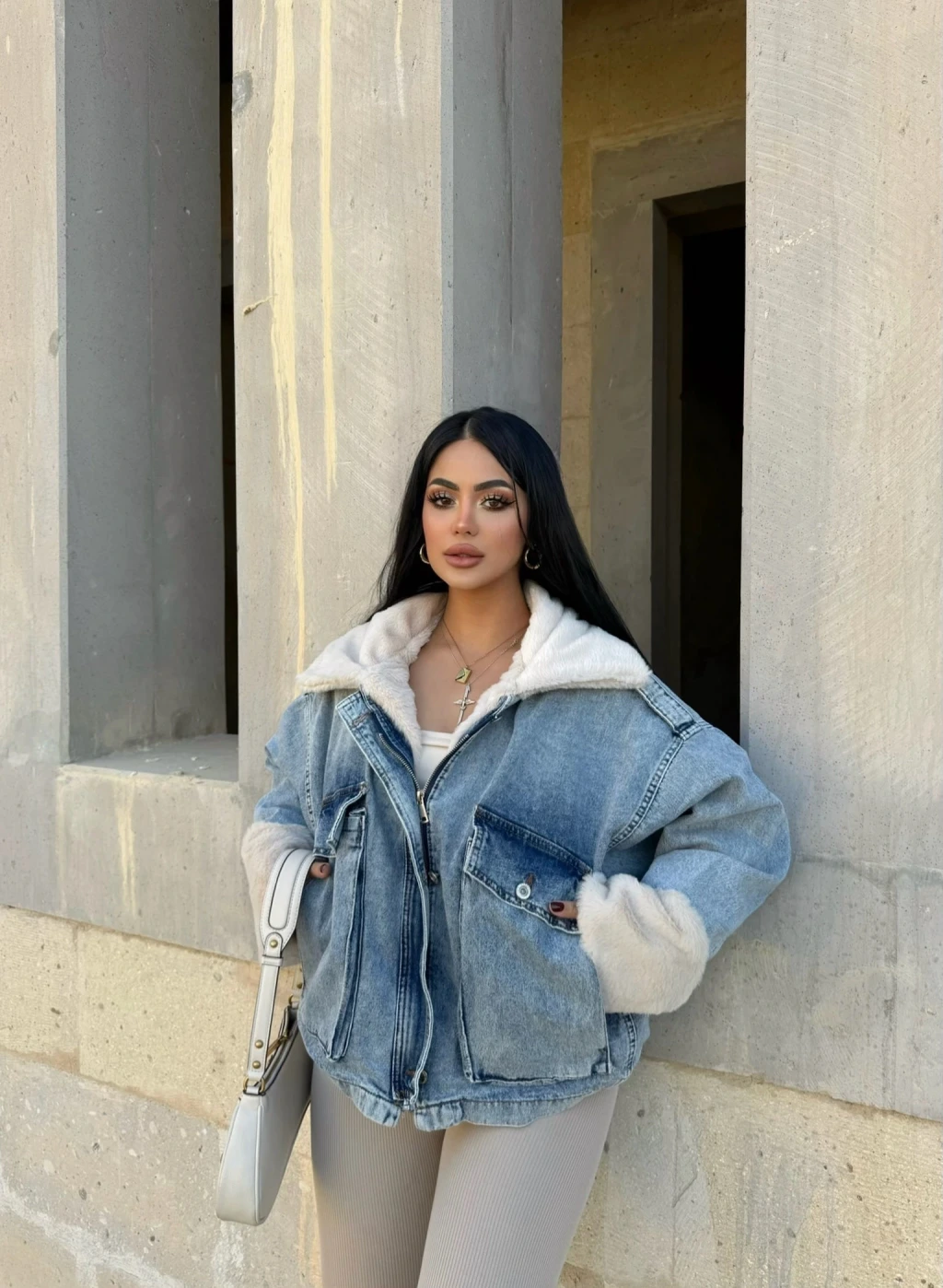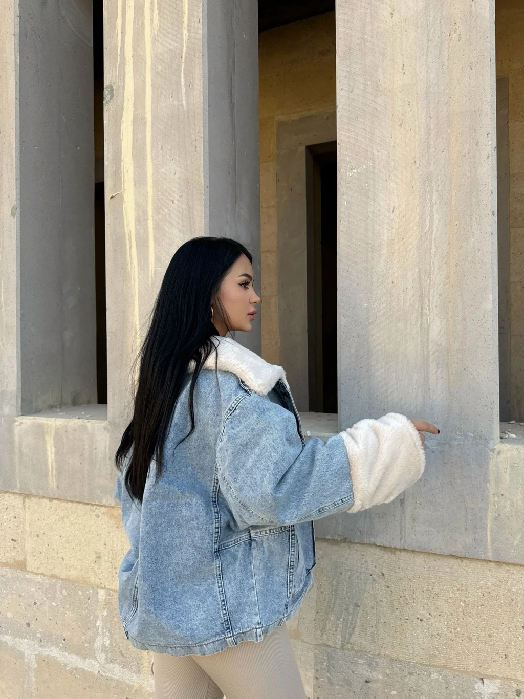 Kırmızı Butik'in şıklığı ve rahatlığı bir arada sunan Körük Cepli Kürklü Denim Mont'u ile tarzınızı tamamlayın.