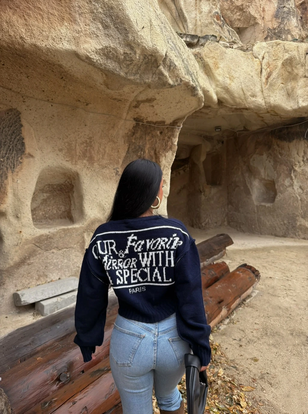 Şıklık ve rahatlığı bir arada sunan Kırmızı Butik Sırt Baskılı Düğmeli Hırka, Triko kategorisindeki favori parçalarınızdan biri olmaya aday!