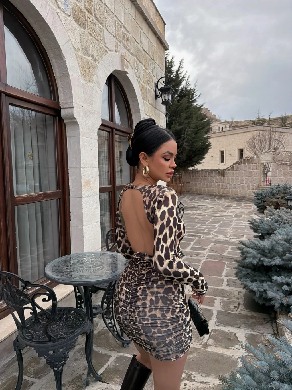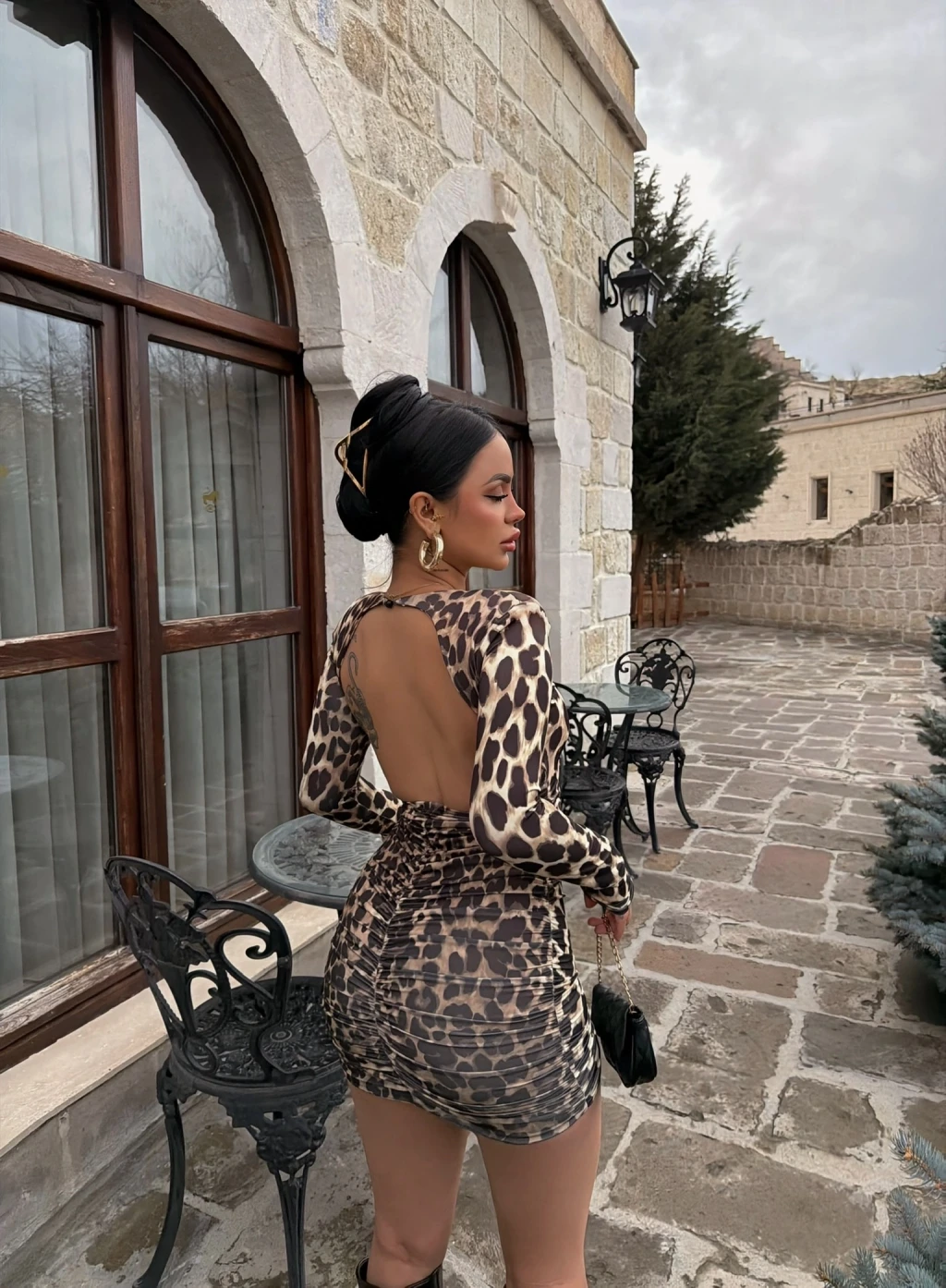 • Sırt dekoltesi ile cesur bir şıklık vurgular.