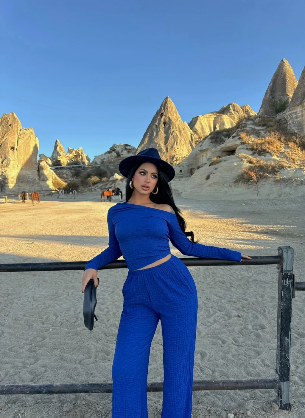 Modern kesimi ve detaylarıyla trendleri yakalayan Kayık Yaka İkili Takım, tarzınıza şıklık katacak mükemmel bir seçenektir.