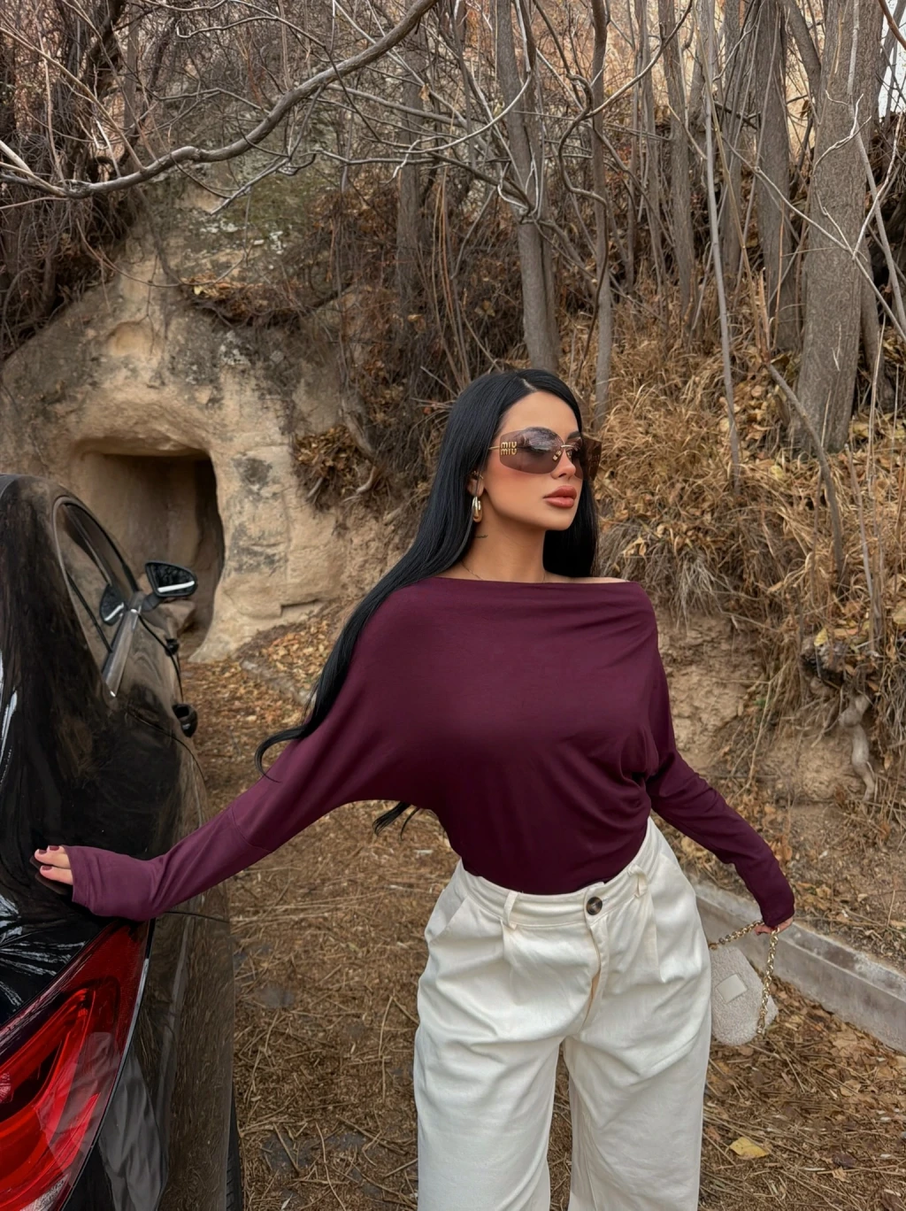 Yarasa Kol Kayık Yaka Bluz, şıklığı ve rahatlığı bir arada sunan Kırmızı Butik tasarımıyla ön plana çıkıyor.
