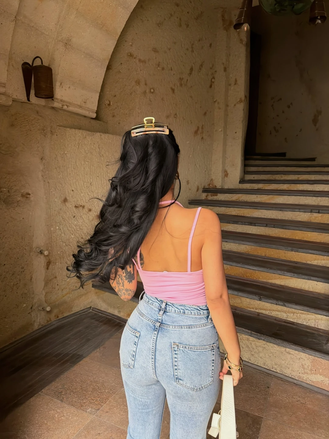 İnce askılı tasarımı ve güpür detaylarıyla dikkat çeken Boyundan Geçmeli Güpürlü Bodysuit, şıklığınızı ön plana çıkaracak bir parça.