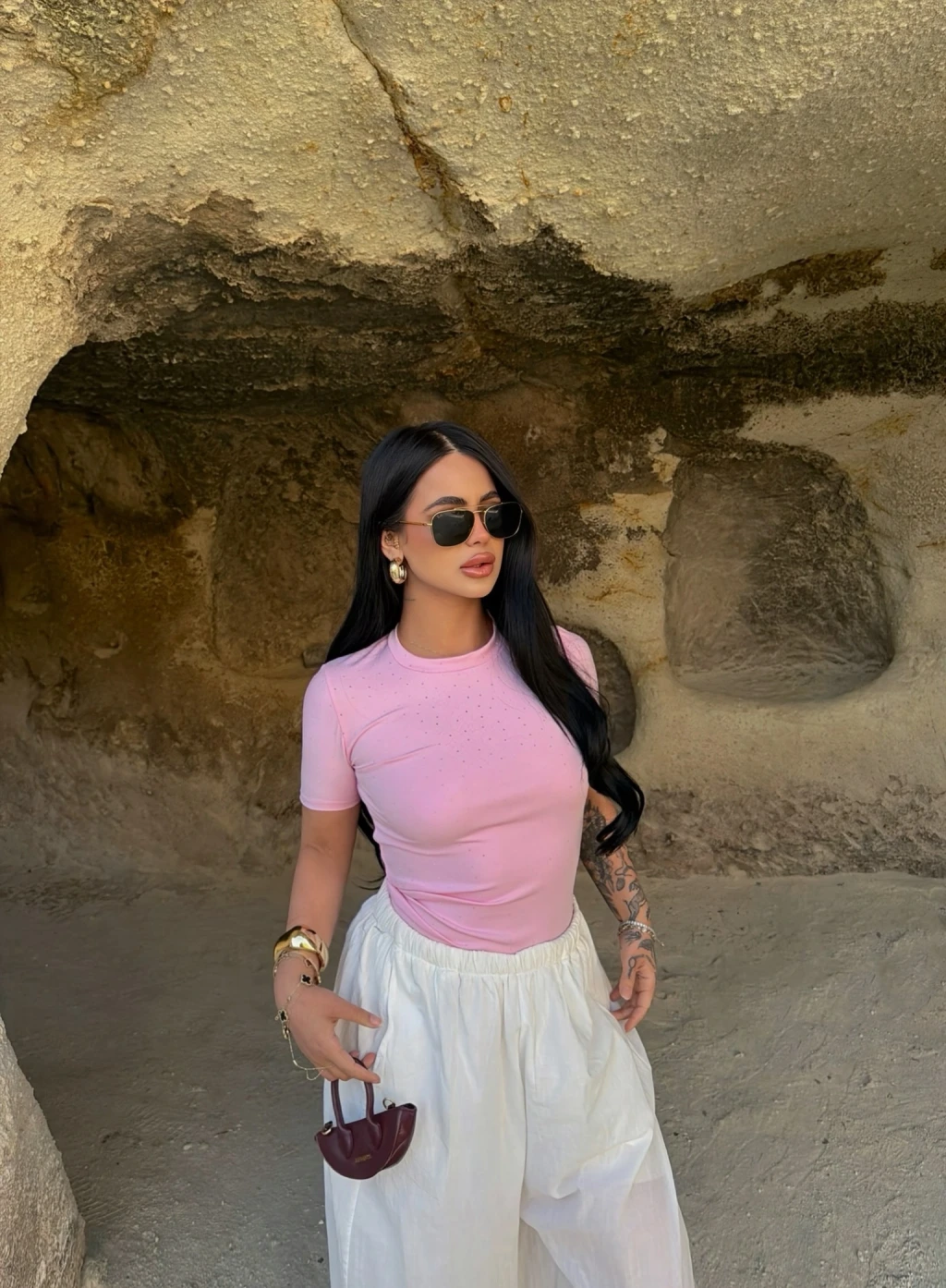 Glam Basic Taşlı Crop ile stilinizi tamamlayın. Kırmızı Butik kalitesiyle tasarlanmış olan bu crop üst, şıklığı ve rahatlığı bir arada sunuyor. İster casual kullanım için isterseniz özel davetlerde tercih edebileceğiniz bu ürün, gardırobunuzun vazgeçilmezi olmaya aday!