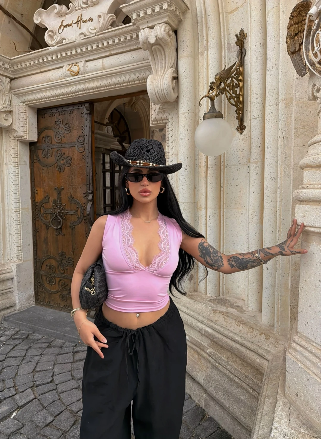Şıklığı ve zarafeti bir arada sunan Kırmızı Butik Güpürlü V Yaka Basic Crop ile tarzınızı konuşturun.