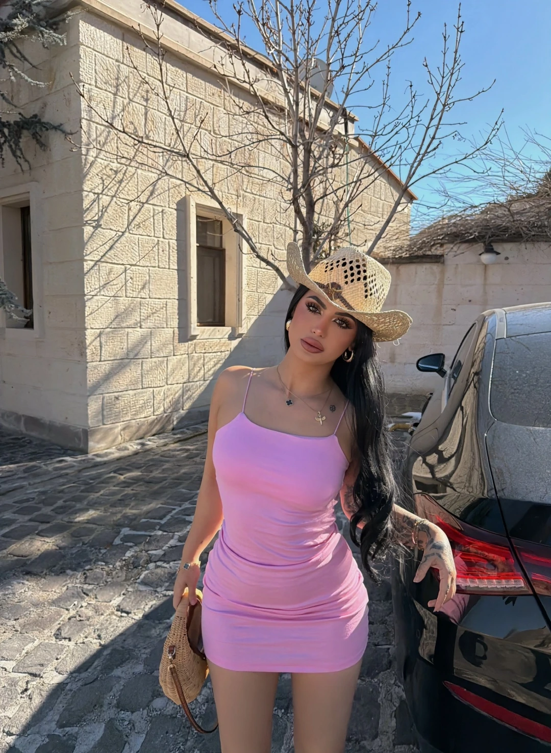 Kırmızı Yanı Tokalı Büzgülü Elbise