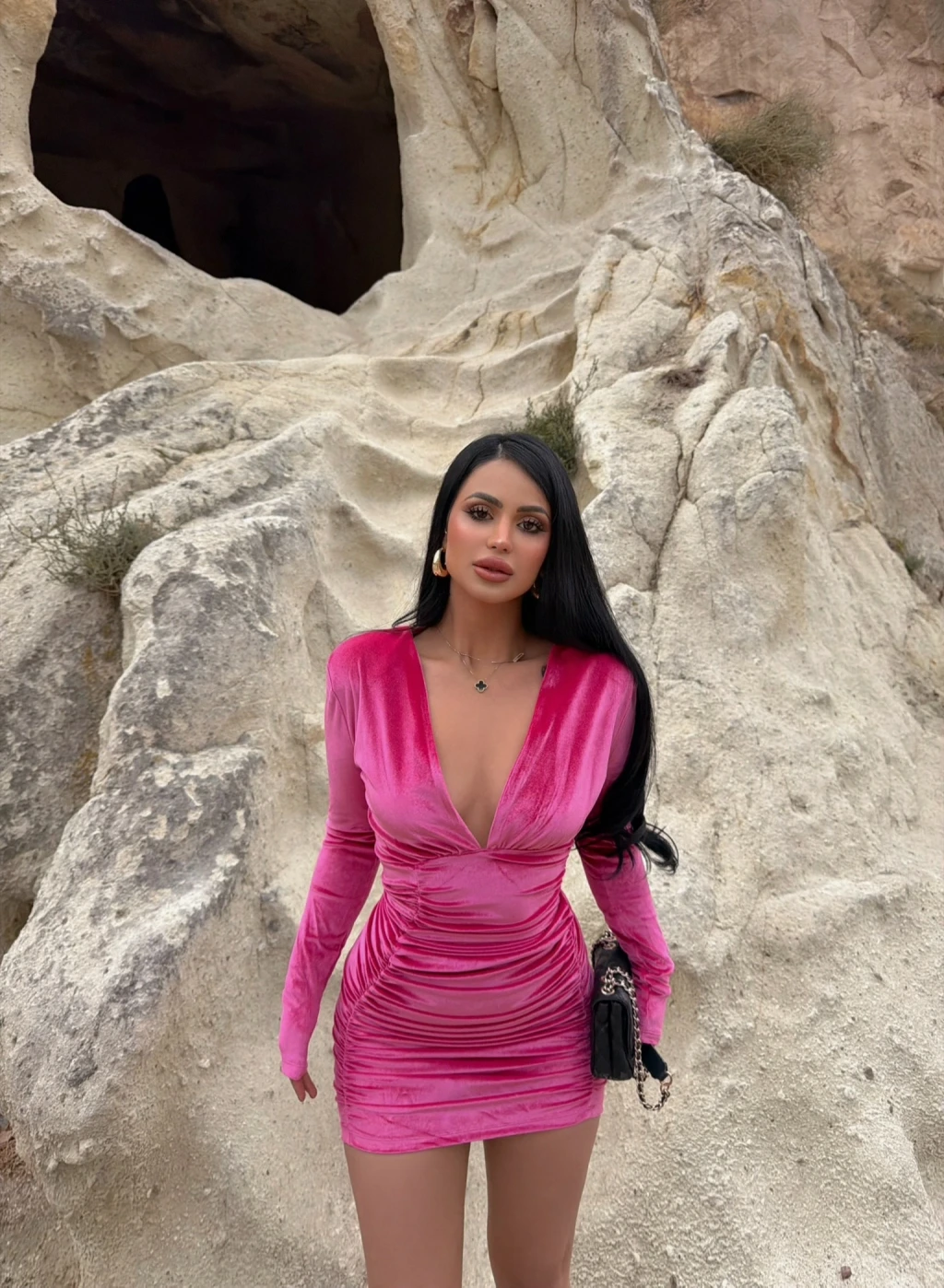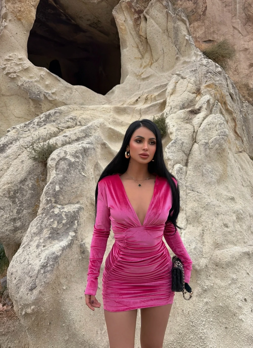 Kırmızı Butik'in şıklığı ve zarafeti bir arada sunan Omuz Vatkalı Kadife Elbise ile her şık davette farkınızı ortaya koyun!