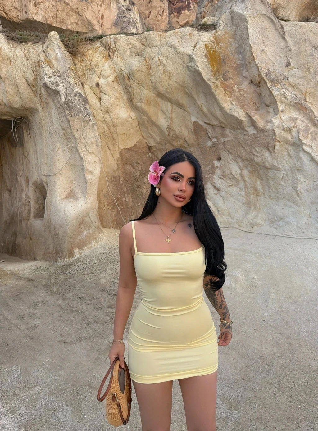 Sarı Askılı Bodycon Mini Elbise