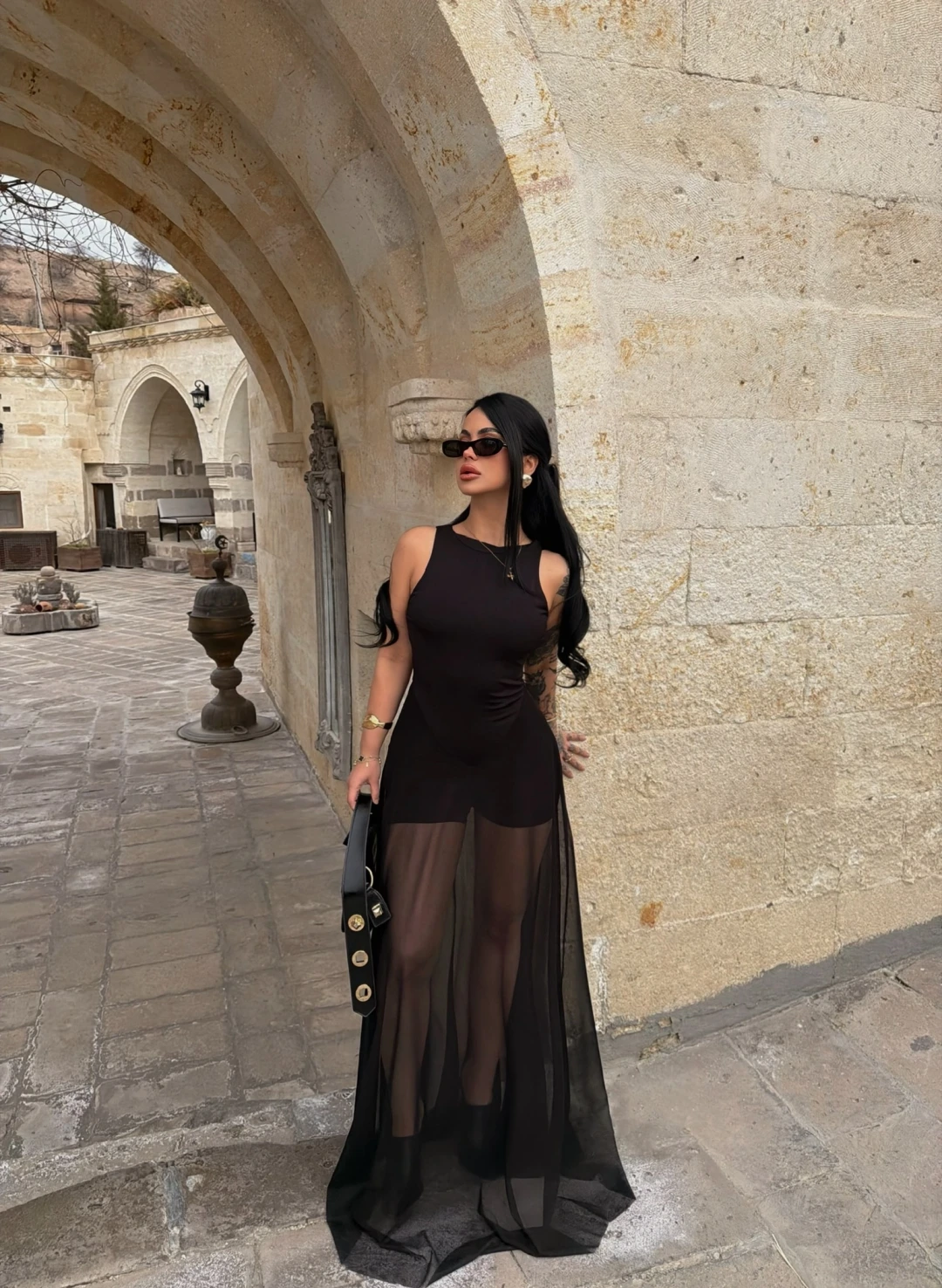Bu şık ve zarif elbise ile her ortamda göz kamaştıran bir görünüme sahip olabilirsiniz. Gardırobunuzun vazgeçilmezi olmaya aday olan Şeffaf Katmanlı Şortlu Elbise, size özel anlarda şıklığı garantiler.