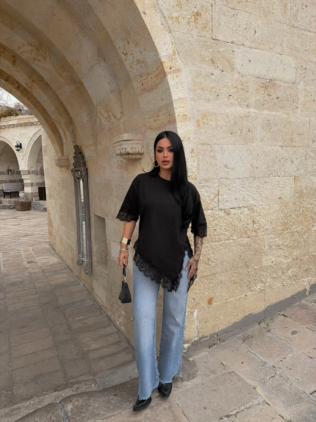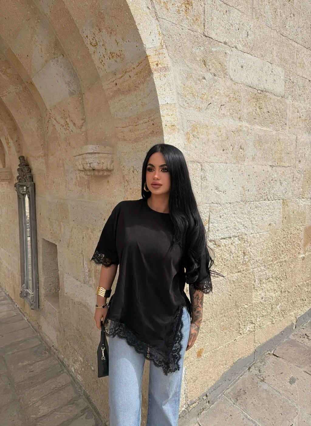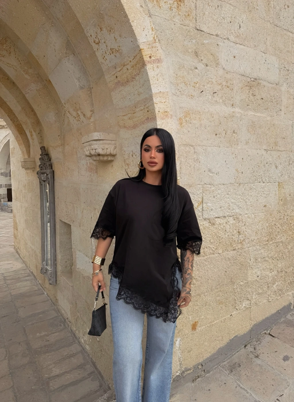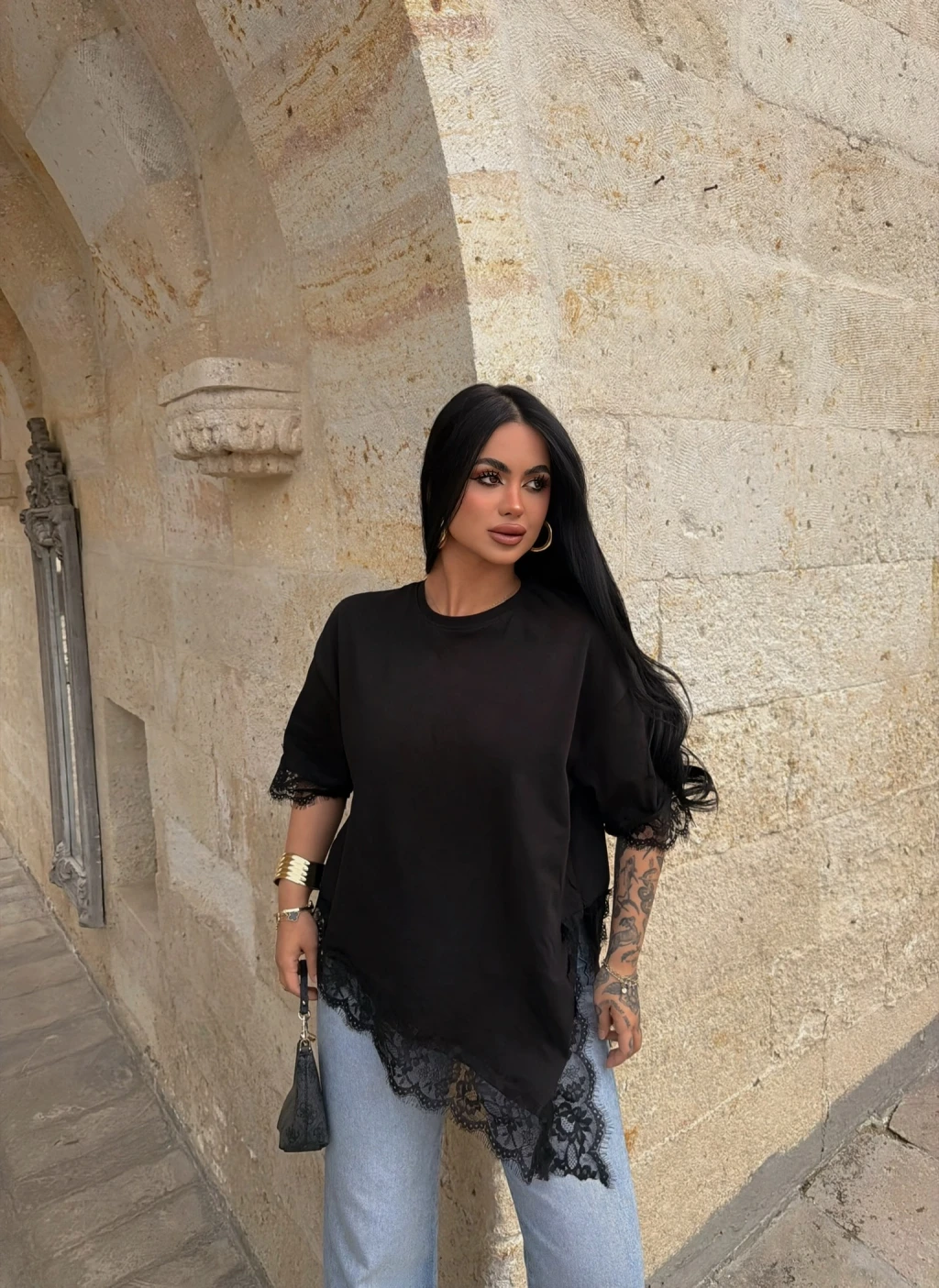 Kırmızı Butik'in asimetrik dantel işlemeli tişörtü, şıklığı ve rahatlığı bir araya getiriyor. Mükemmel detayları ve özel tasarımıyla her tarza uyum sağlar.