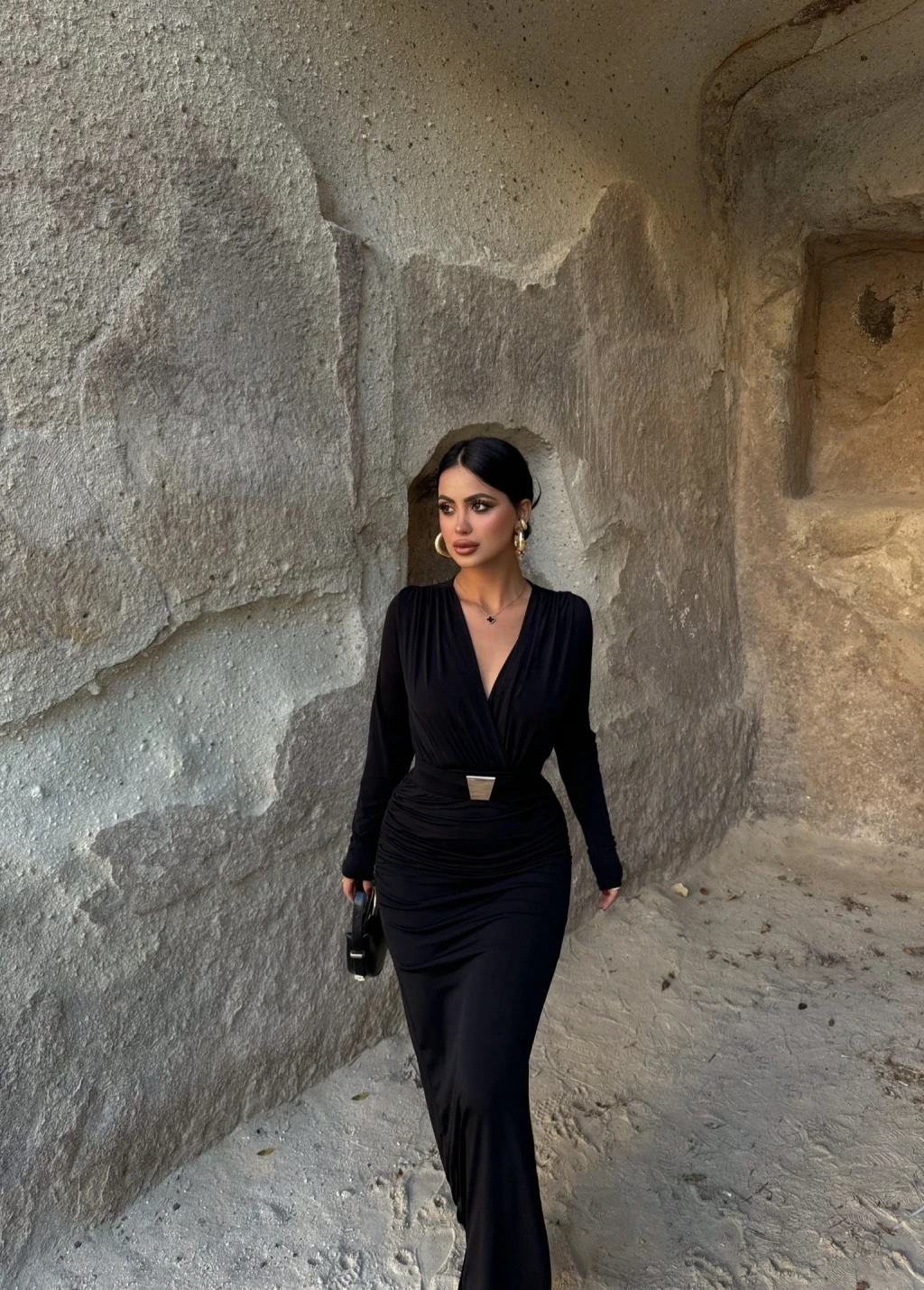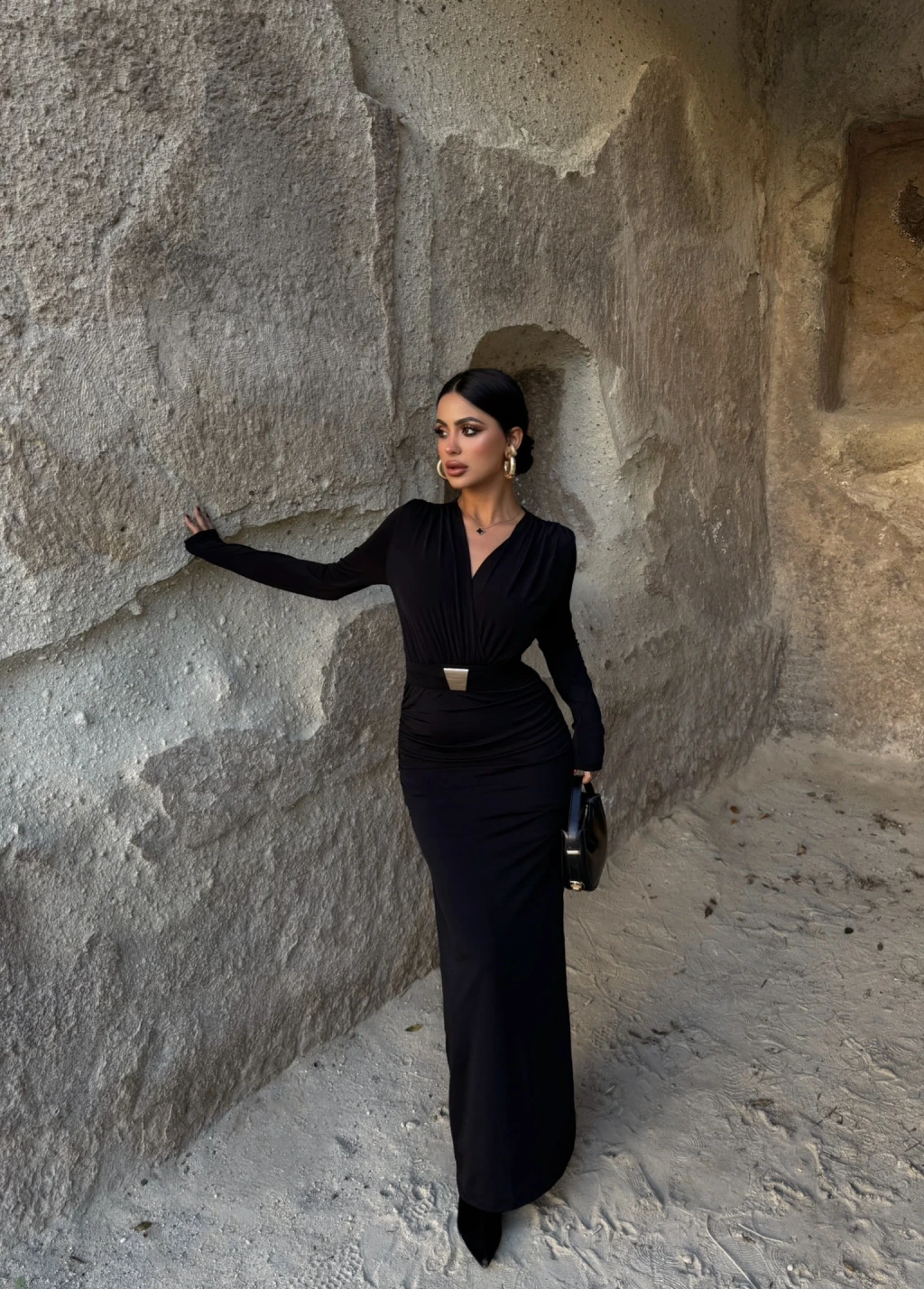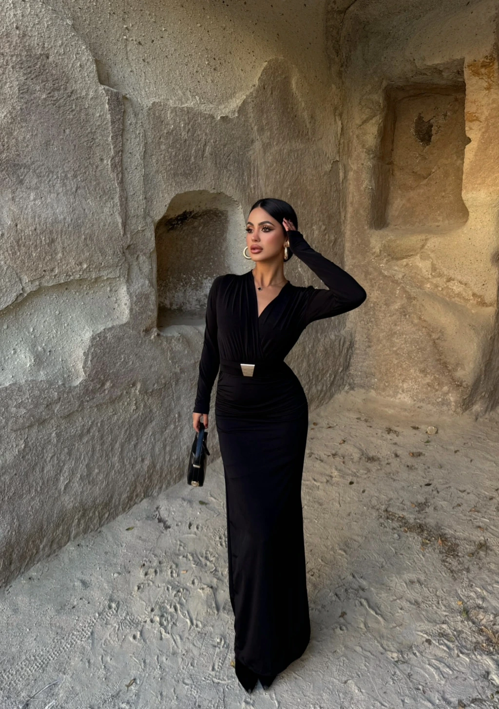 Bel Tokalı Drapeli Elbise, Kırmızı Butik'in Uzun Elbise kategorisindeki şık ve zarif bir seçenektir.