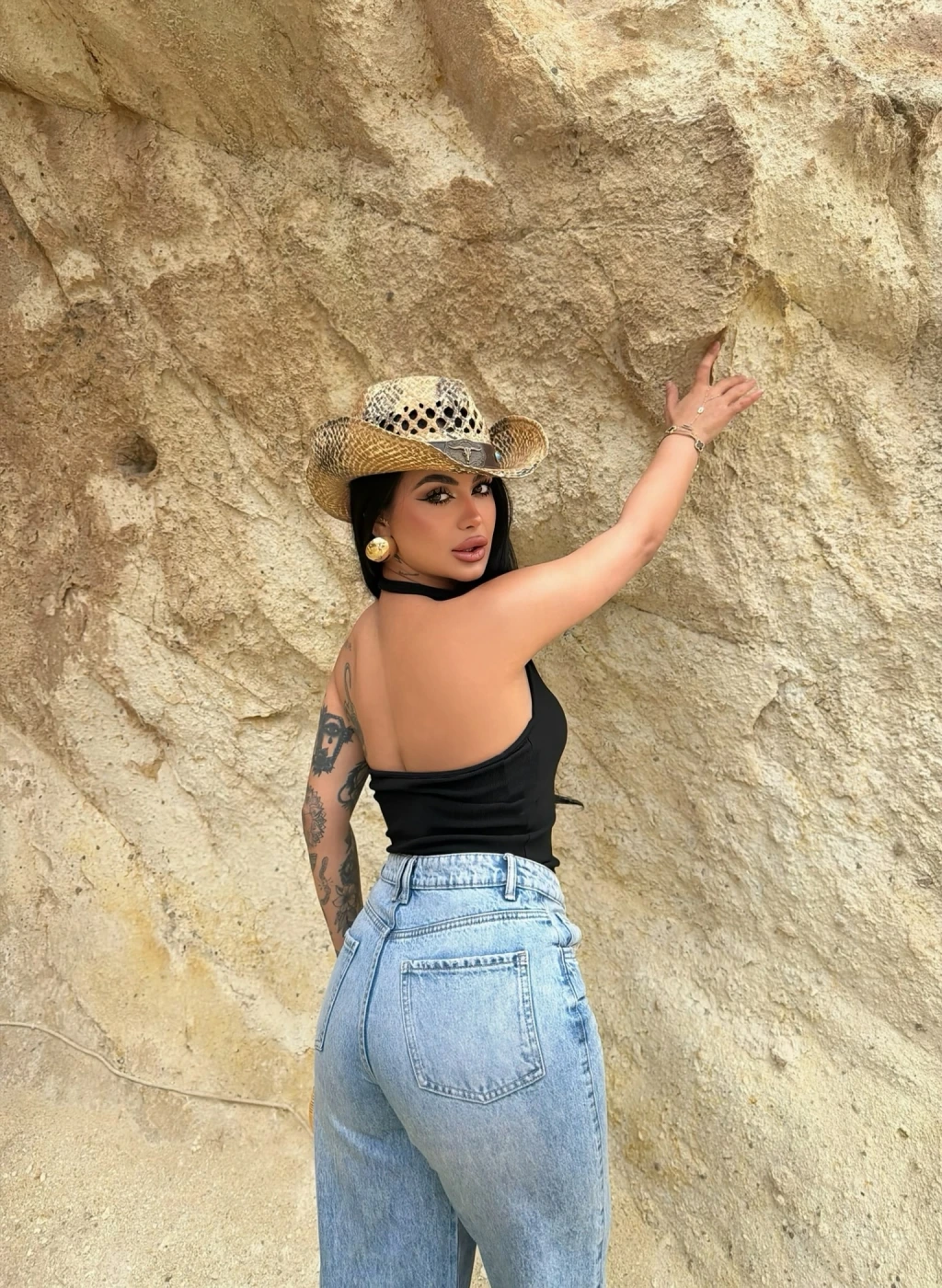 Siyah Boyundan Geçmeli Aksesuarlı Crop
