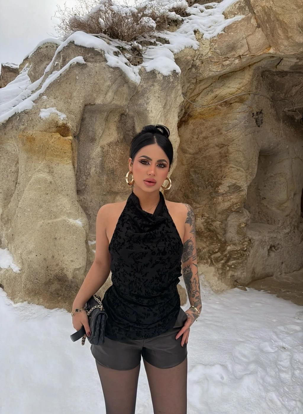 Kırmızı Butik'in özenle tasarlayıp ürettiği Boyundan Geçmeli Flok Bluz, gardırobunuzun vazgeçilmez parçalarından biri olmaya aday!