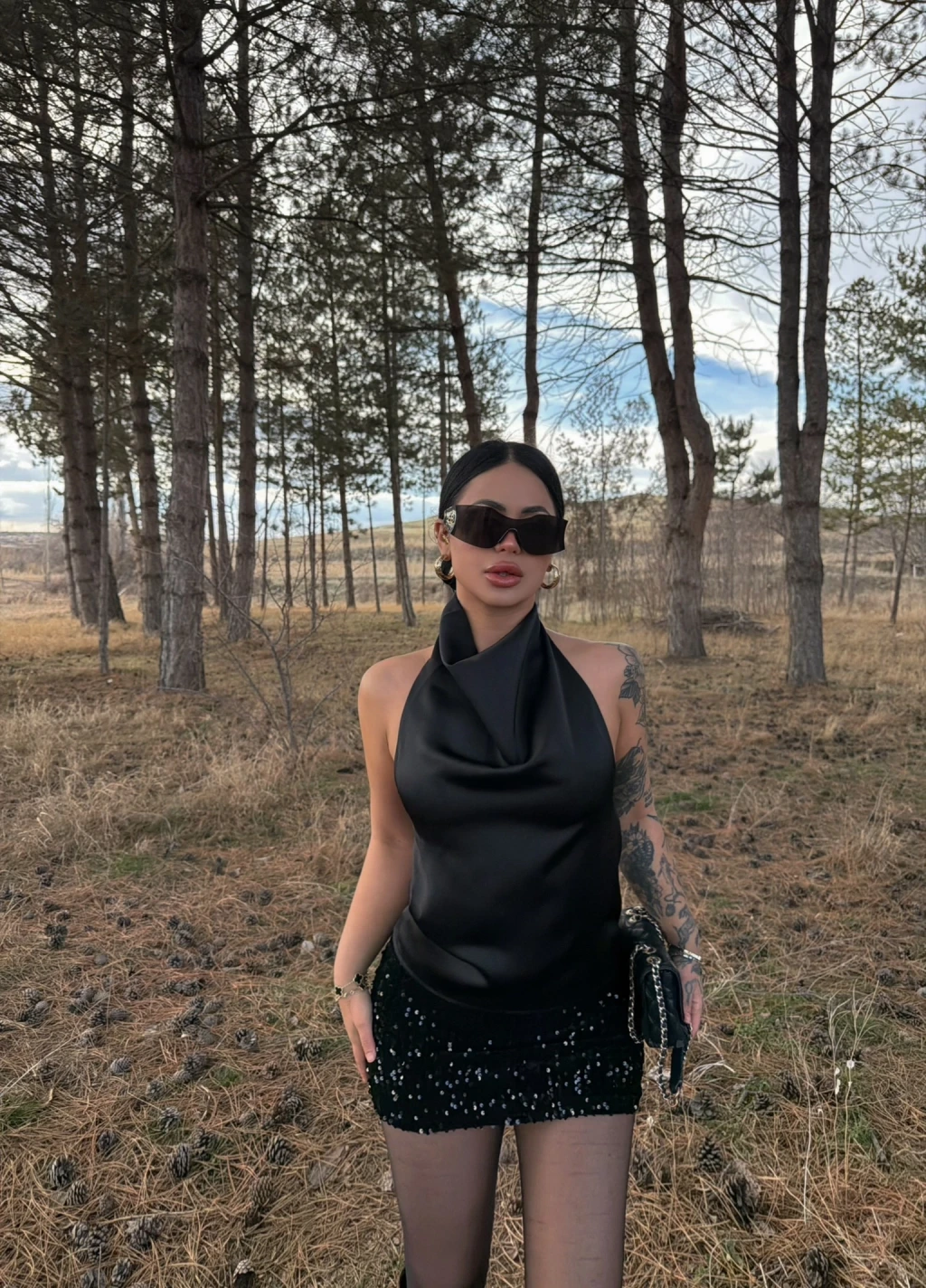 Şıklığı ve rahatlığı aynı anda yaşamak isteyen kadınlar için ideal bir seçim olan Boyundan Geçmeli Saten Bluz, Kırmızı Butiks'in özel tasarımıdır.