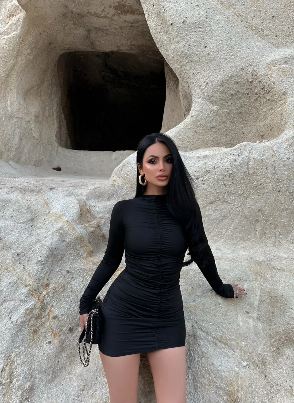 Kırmızı Butik Büzgülü Mini Elbise, şıklığı ve feminenliği bir arada sunan bir tasarıma sahiptir.