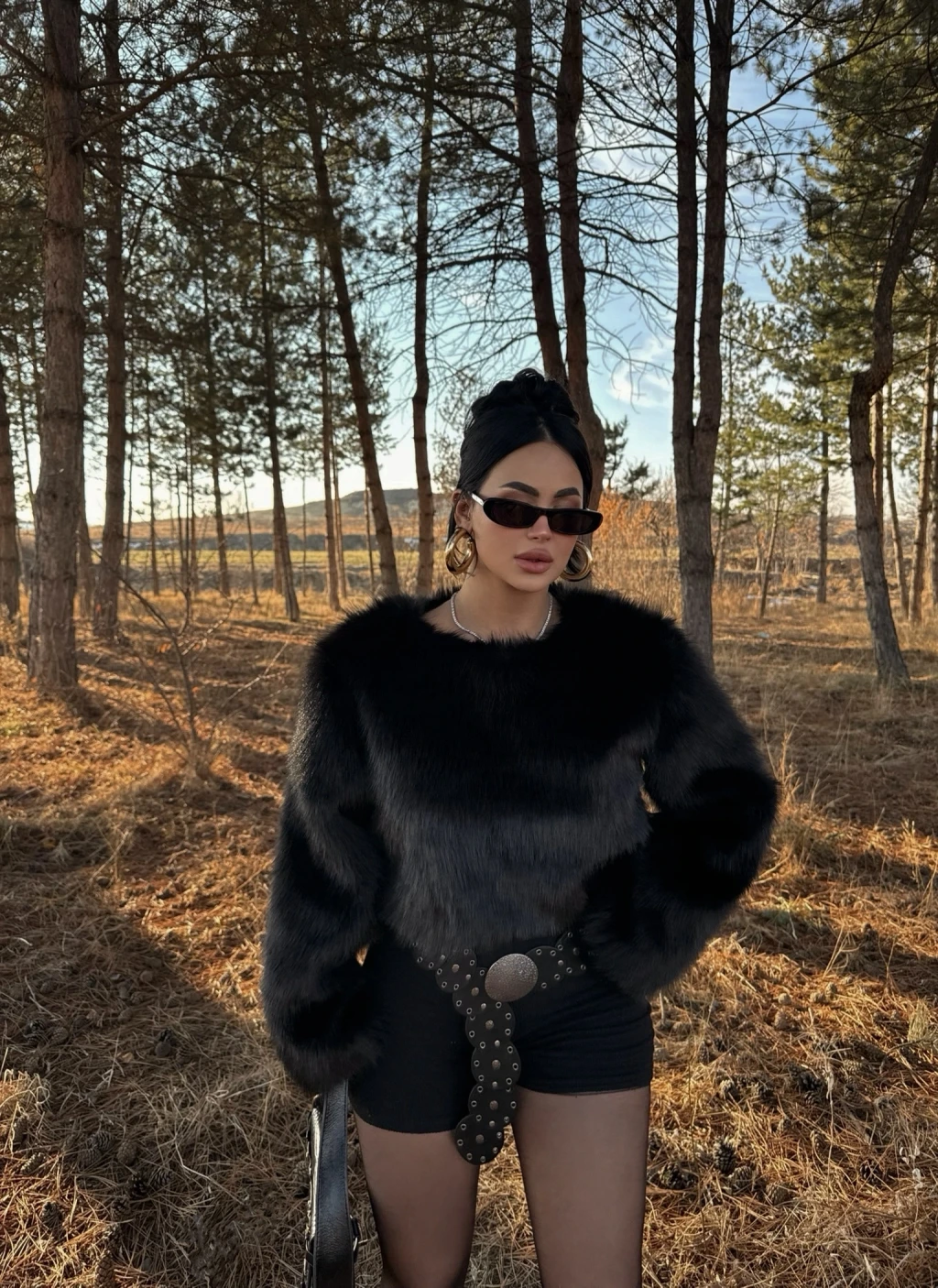 Kürk detaylarıyla hem sıcak tutar hem de şıklık katar.