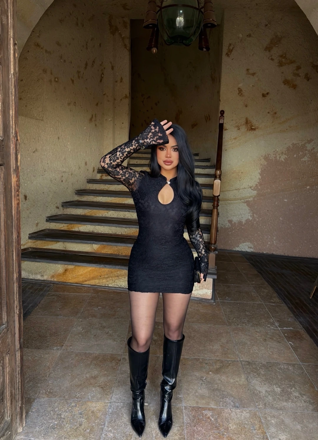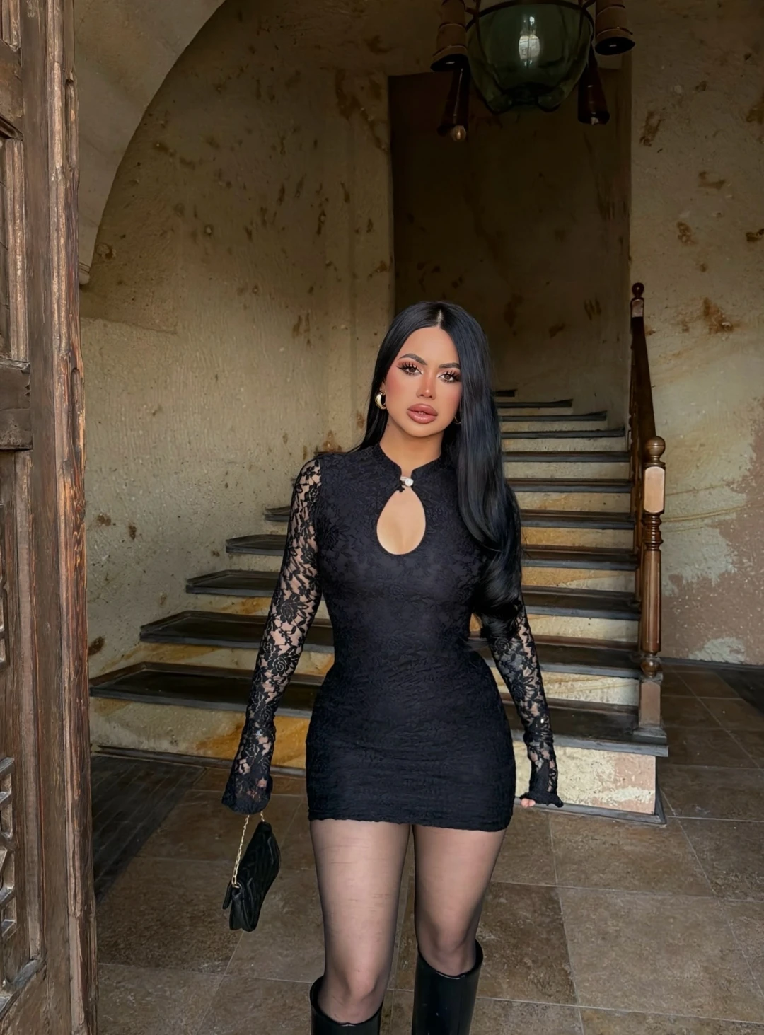 Bordo Boyundan Bağlamalı Tokalı Elbise