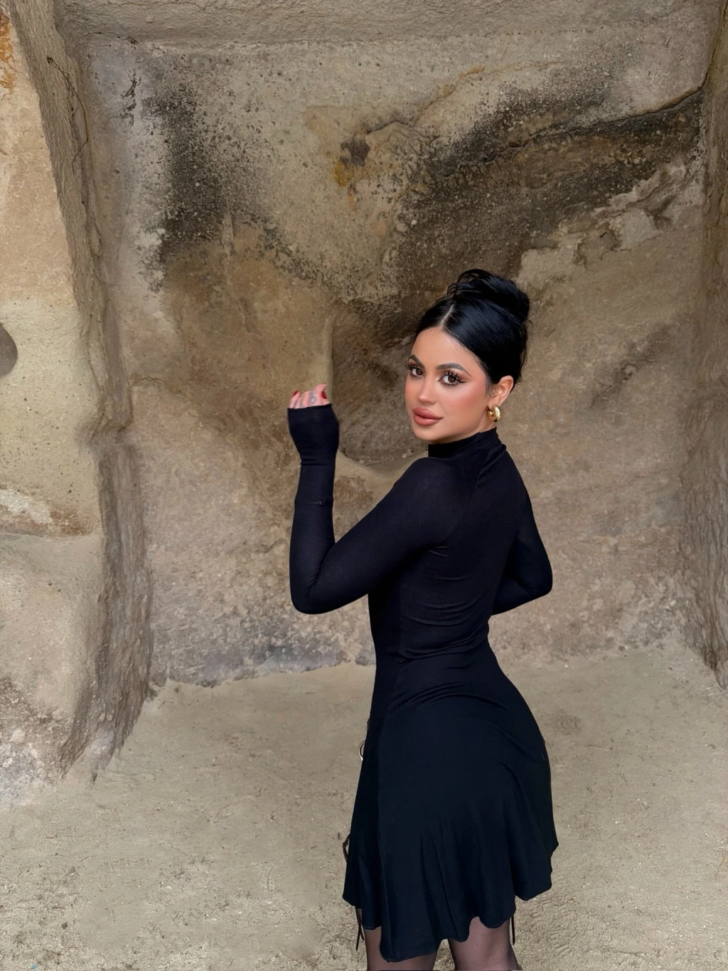 • Dik yaka detayı, elbiseye modern bir hava katar.