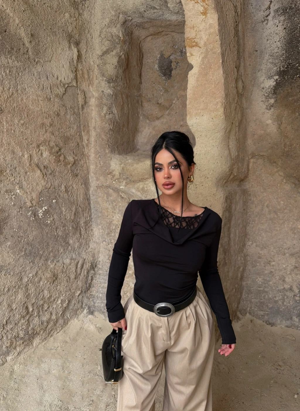 Göğüs Güpürlü Bluz, Kırmızı Butik'in şık ve feminen tasarımları arasında öne çıkan bir parçadır.