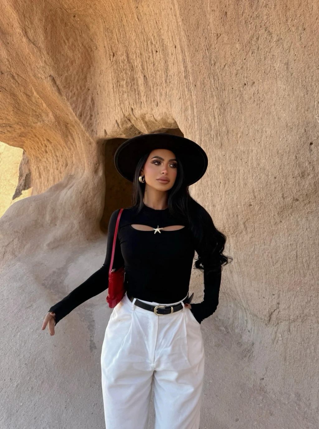 Kırmızı Butik'in özel tasarımı Göğüs Pencereli Star Crop ile şıklığı ve rahatlığı bir arada yaşayacaksınız.