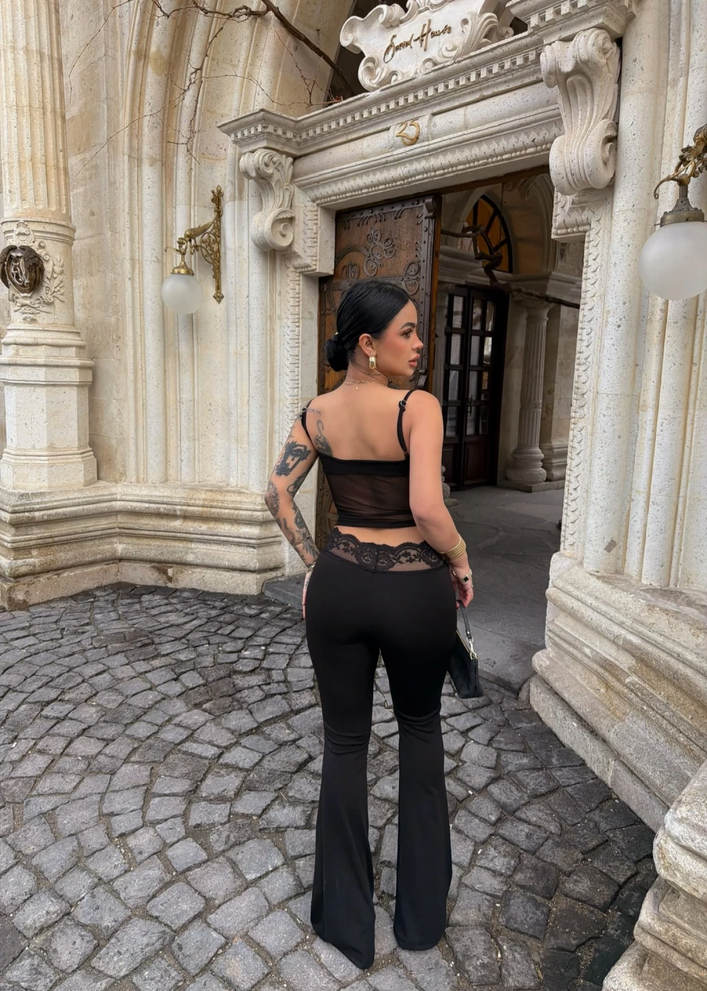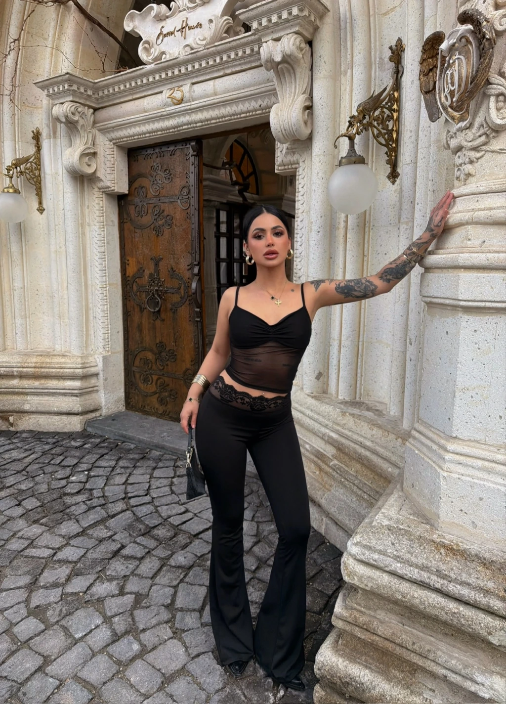 - Güpür detaylarıyla feminen bir görünüm sunar.
