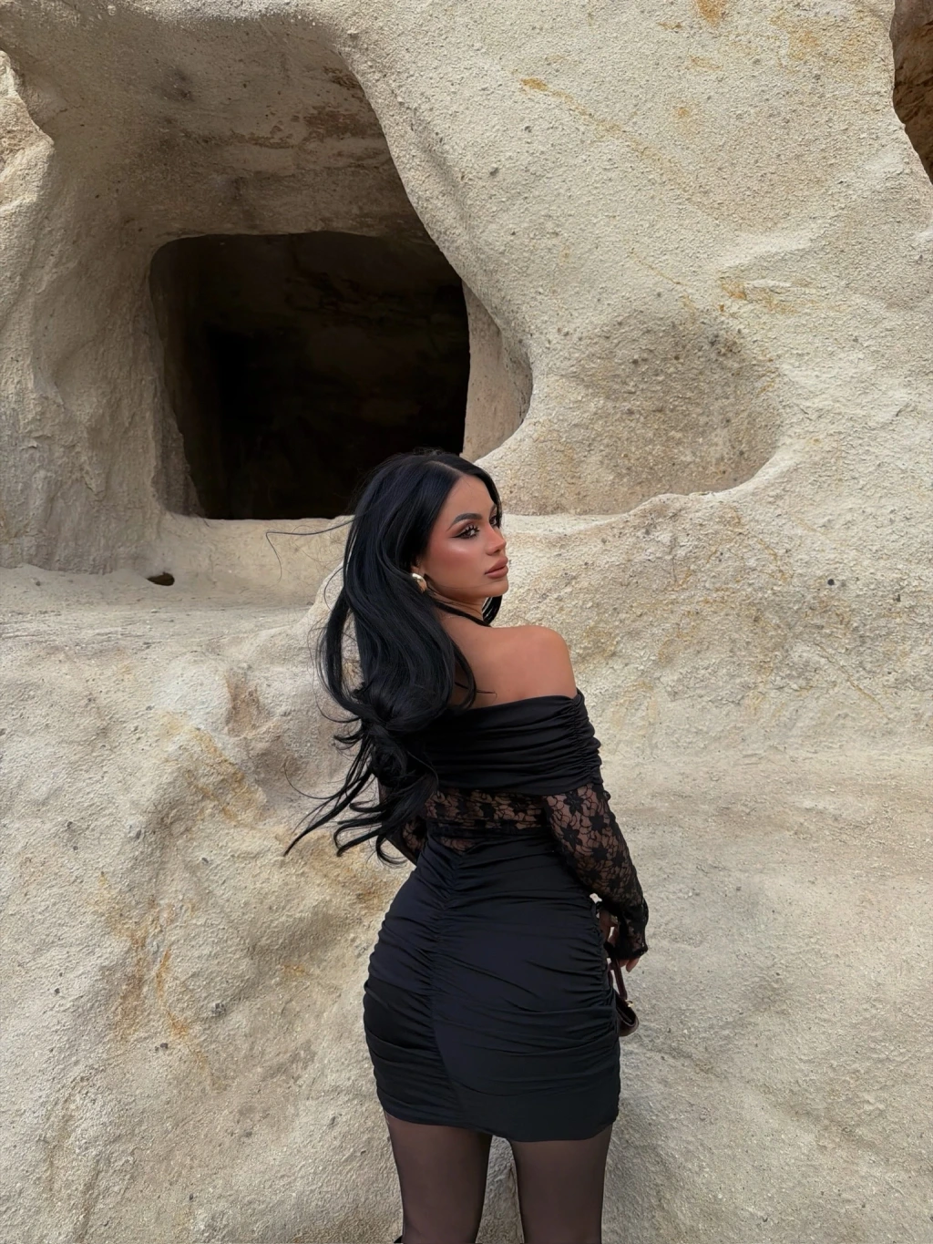 Güpürlü Düşük Omuz Elbise, partilerden özel davetlere birçok farklı etkinlikte tarzınızı ön plana çıkaracak!