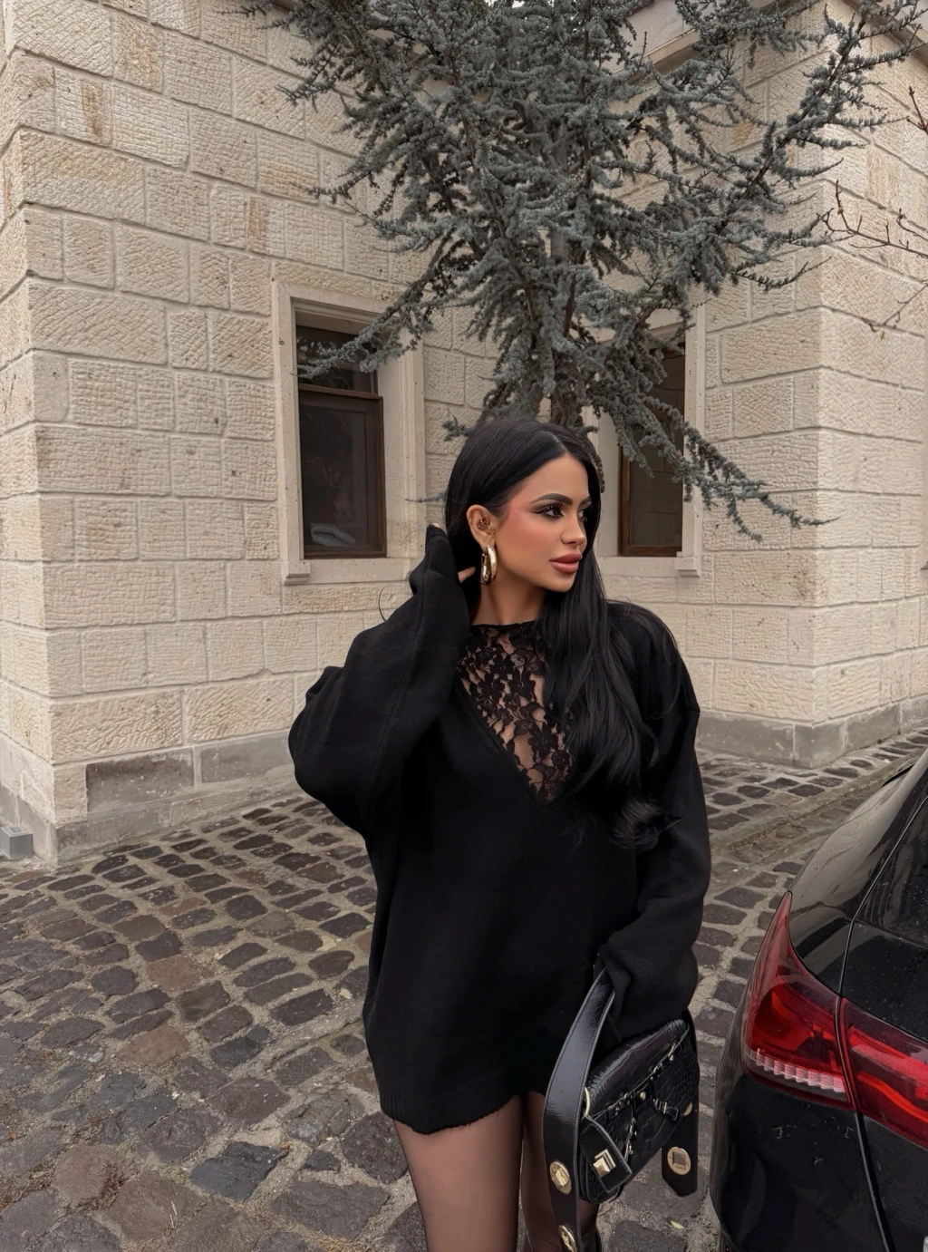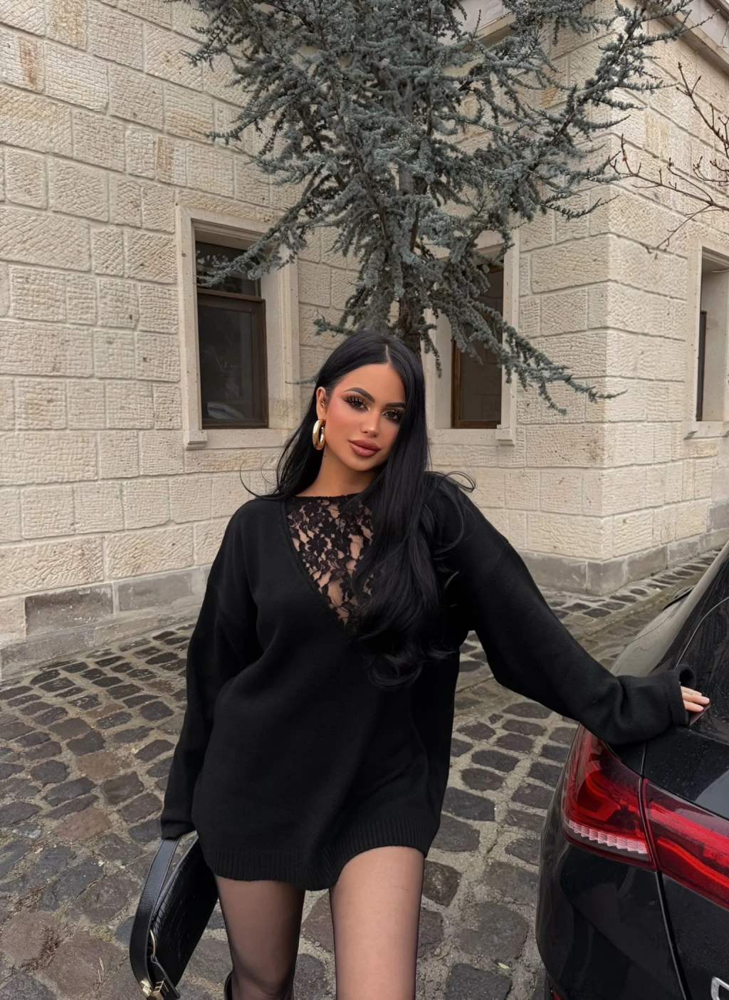 Siyah Güpürlü Kazak (Güpür ön-arka kullanılabilir)