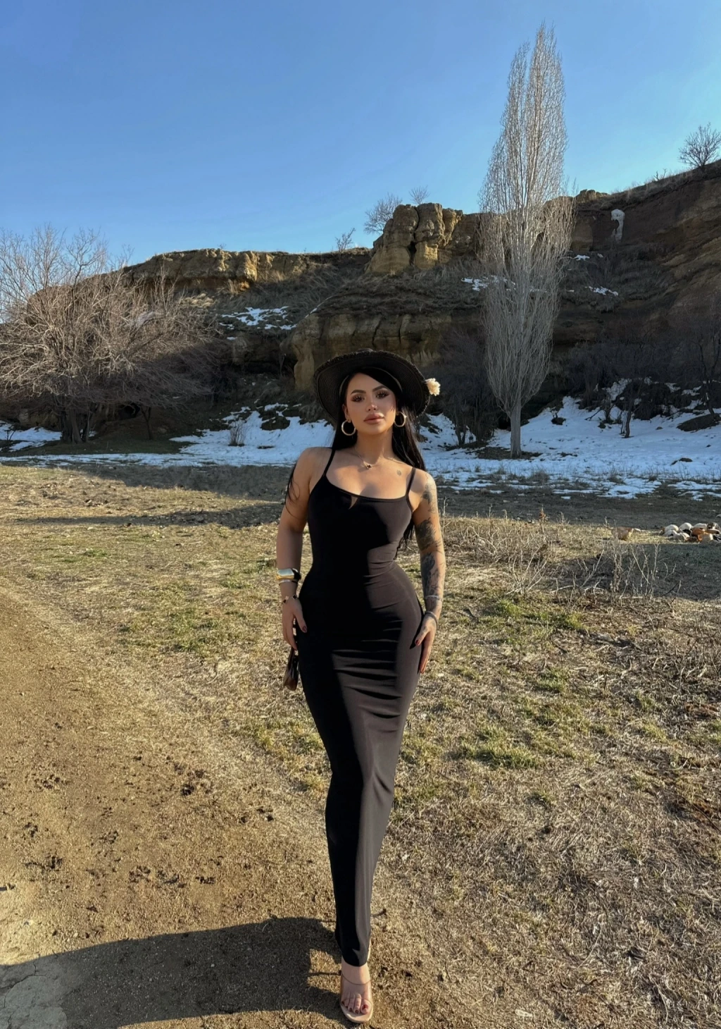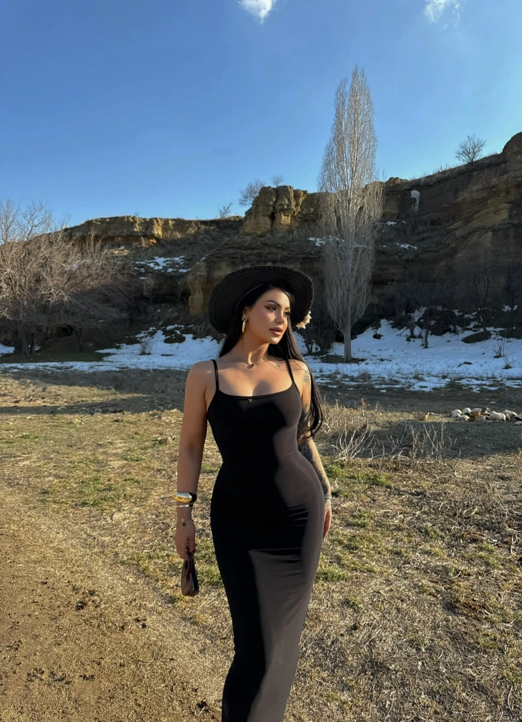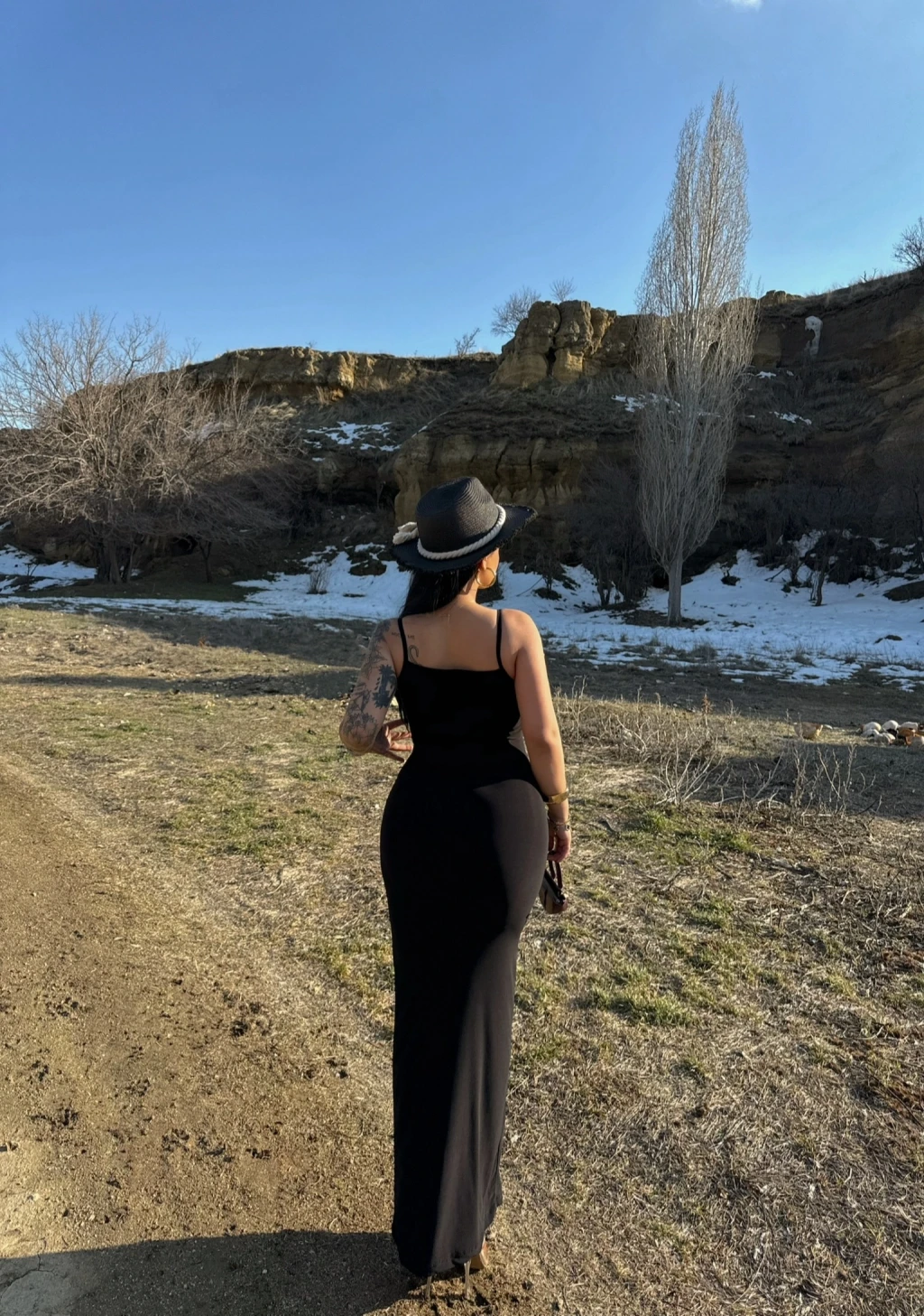 Siyah İp Askılı Maxi Elbise