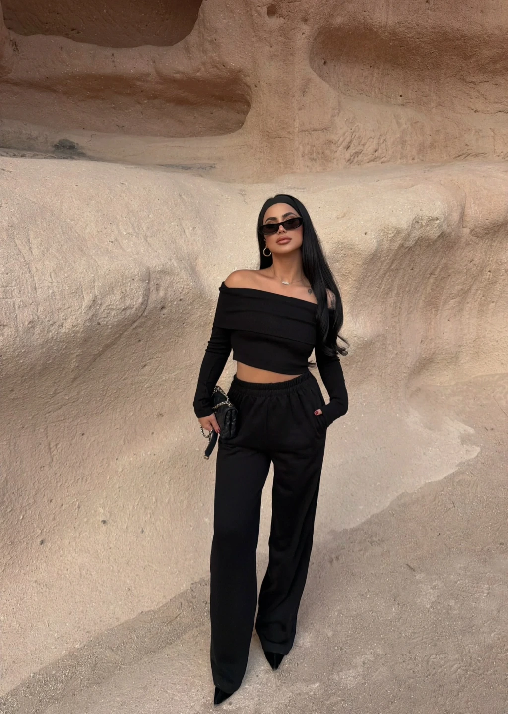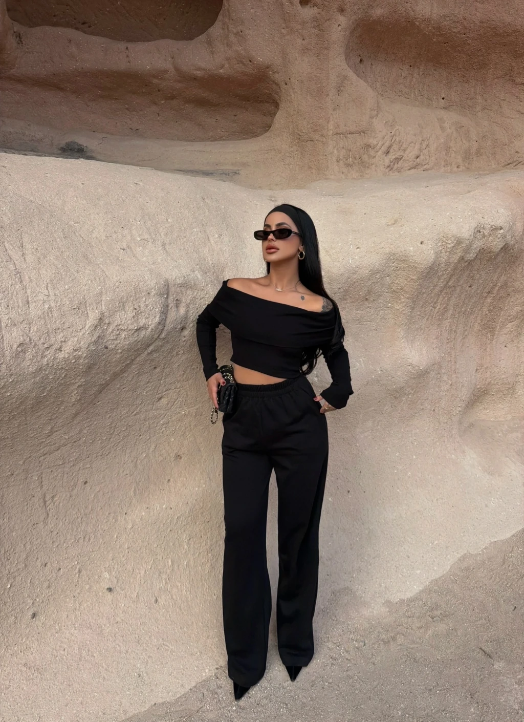 Kırmızı Butik'in şıklık ve rahatlığı buluşturan Katlamalı Madonna İkili Takımı, zarif tasarımıyla göz kamaştırıyor.