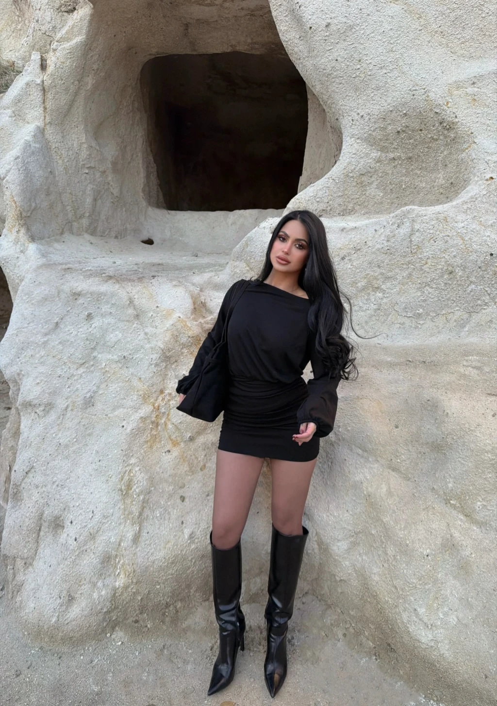 Siyah Boyundan Geçmeli Sakallı Elbise