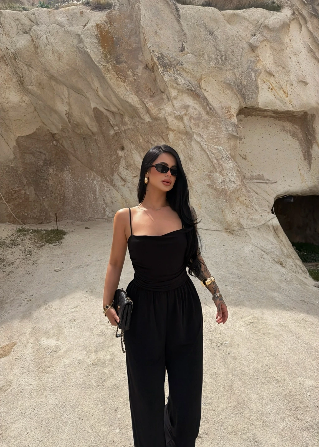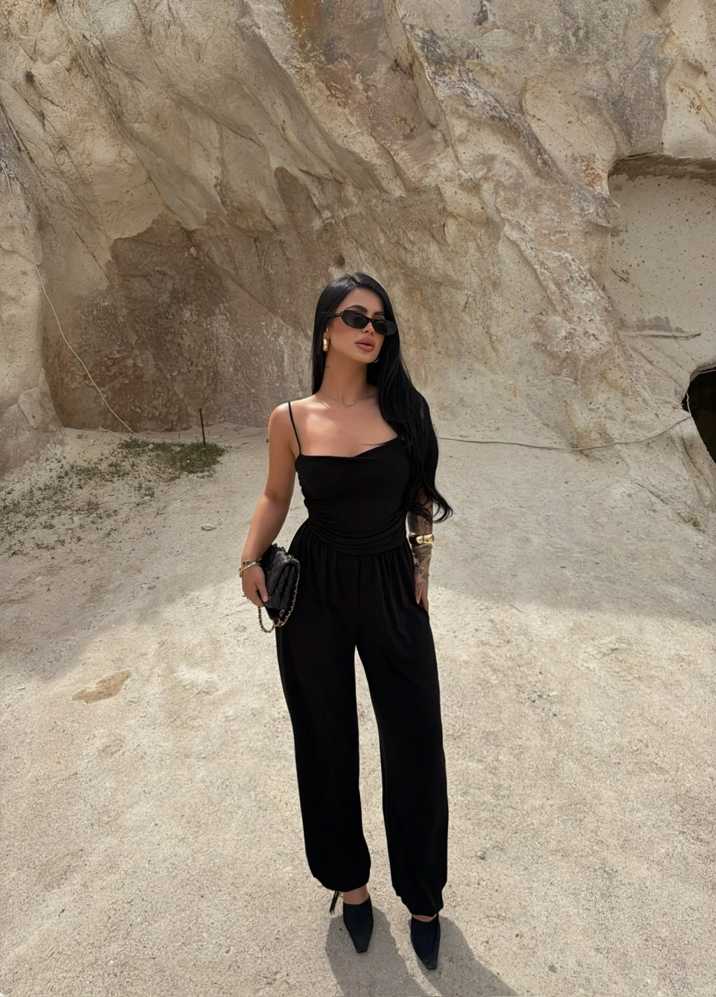Kırmızı Butik'in şık ve zarif tasarımıyla karşınızda: Luxe Drapeli Askılı Tulum!