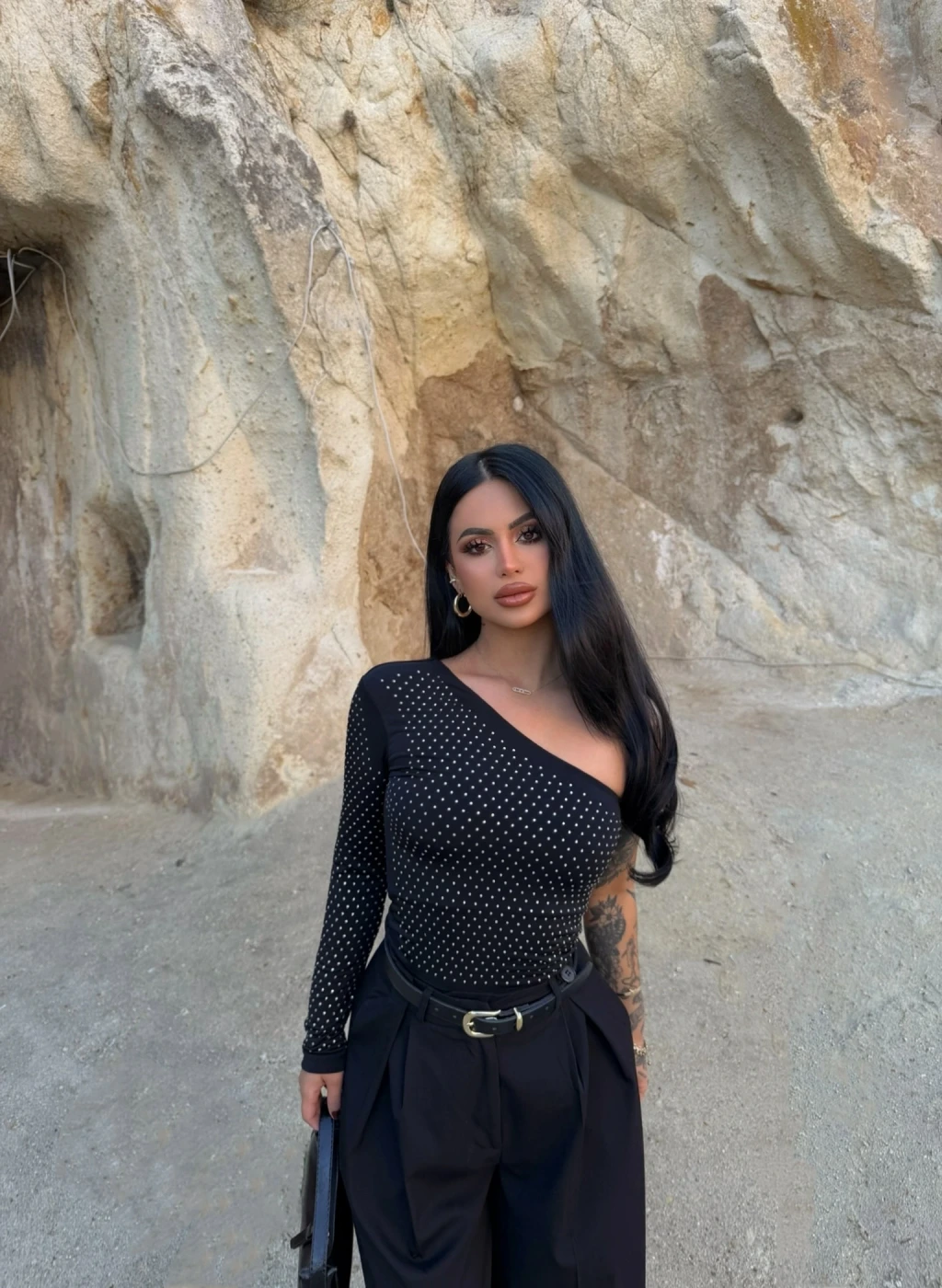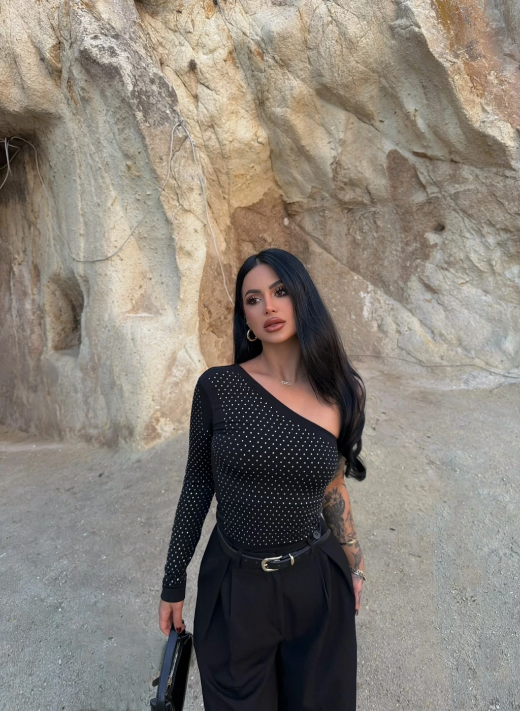 Luxe Tek Omuz Taşlı Bluz, şıklığı ve zarafeti bir arada sunan Kırmızı Butik'in özel tasarımıdır.