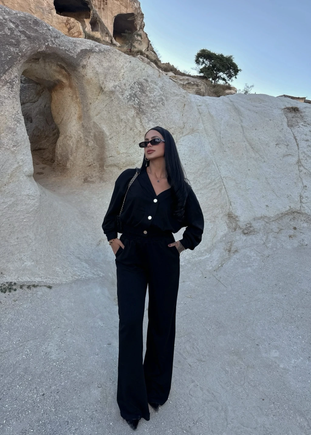 Kırmızı Butik'in şık ve modern tasarımıyla öne çıkan Modal Düğmeli İkili Takım, gardırobunuzun vazgeçilmezi olmaya aday. Hem şık etkinliklerde hem de günlük kullanımda rahatlıkla tercih edebileceğiniz bu takım, tarzınıza şıklık katacak.