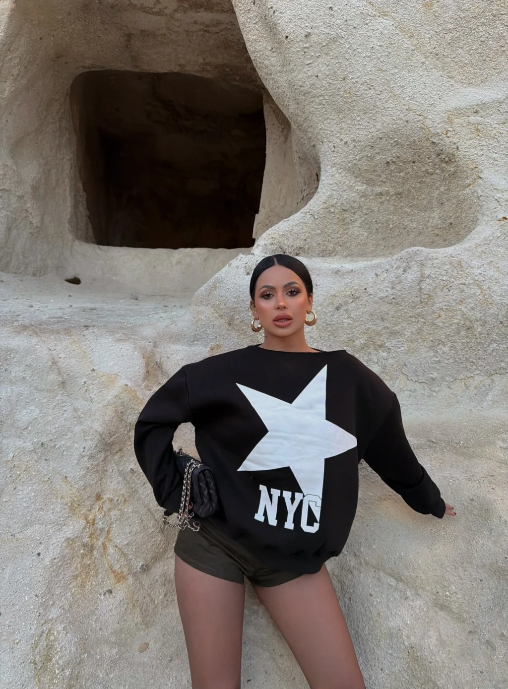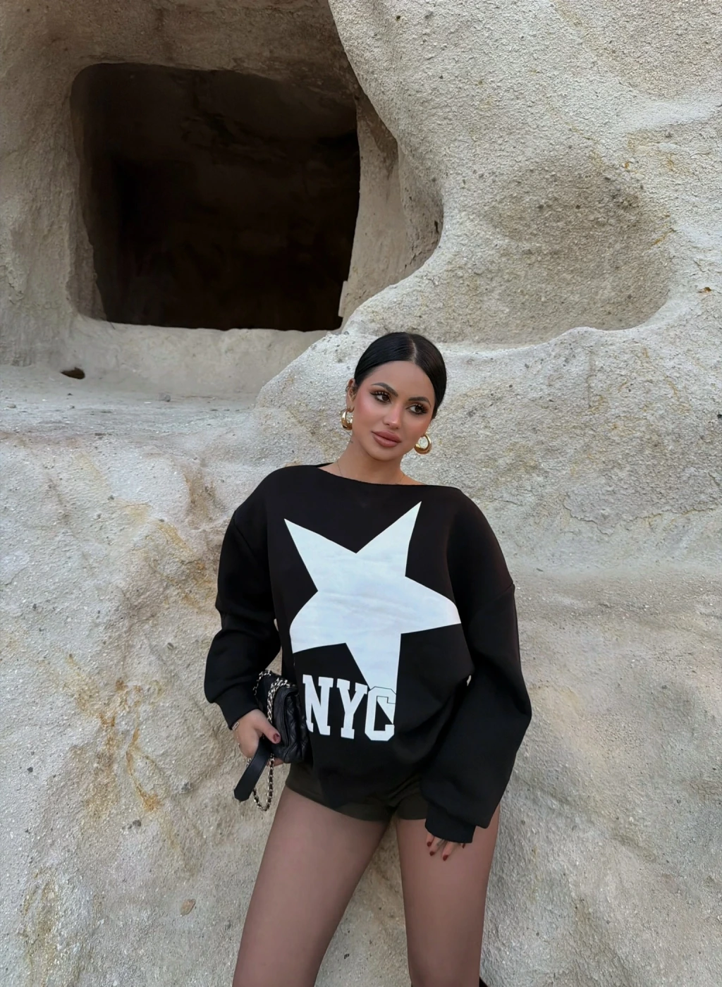 NYC Kayık Yaka Sweat, şıklığı ve rahatlığı bir arada sunan Kırmızı Butik'in özel tasarımıdır. Oversize kesimi ile modern bir görünüm sunan bu sweatshirt, her mevsim kullanım için idealdir.