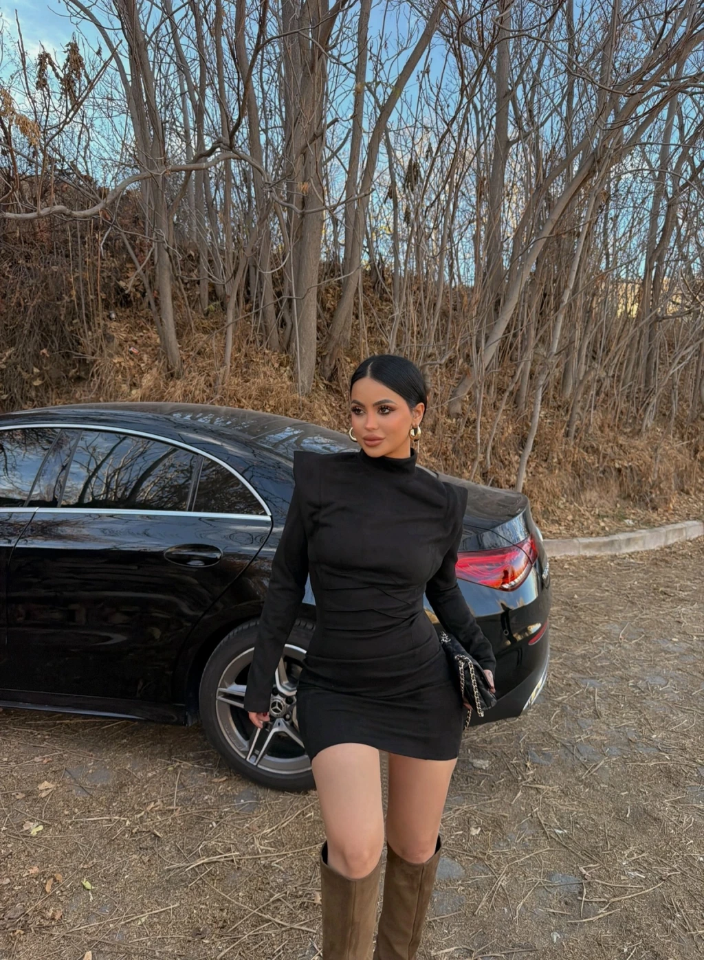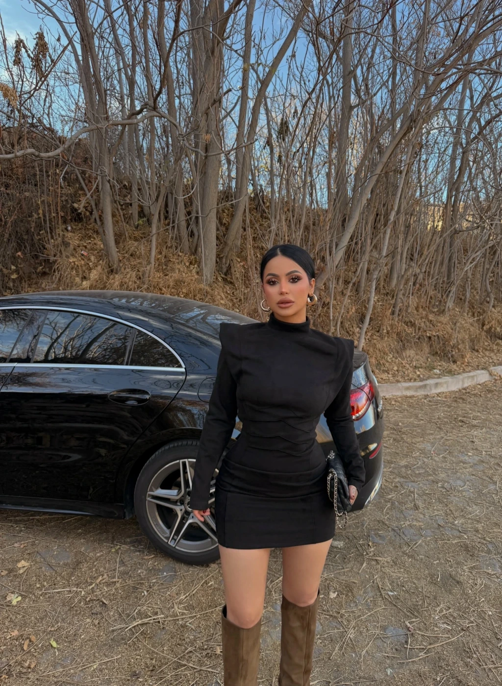 Omuz Vatkalı Süet Elbise, Kırmızı Butik'in zarif ve şık tasarımlarından biridir. Bu elbise, Mini Elbise kategorisinde yer almaktadır.