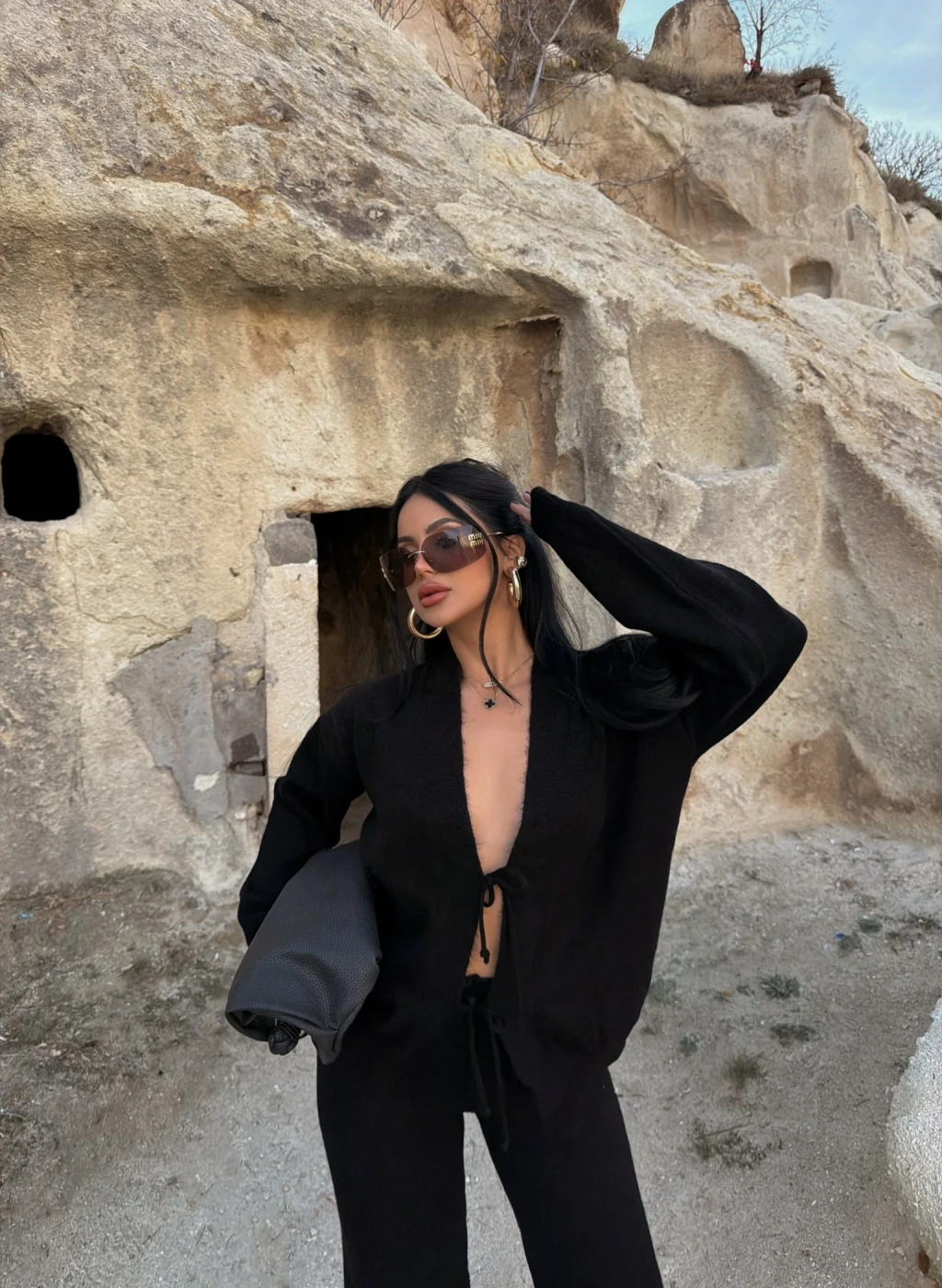 Trendlere öncülük eden Kırmızı Butik'in ön bağcıklı triko takımı, şıklığı ve rahatlığı bir arada sunuyor.