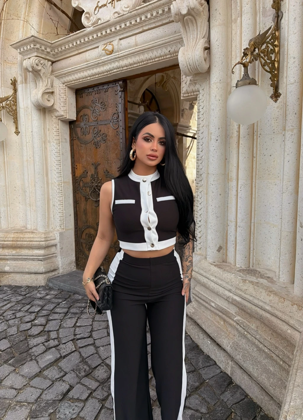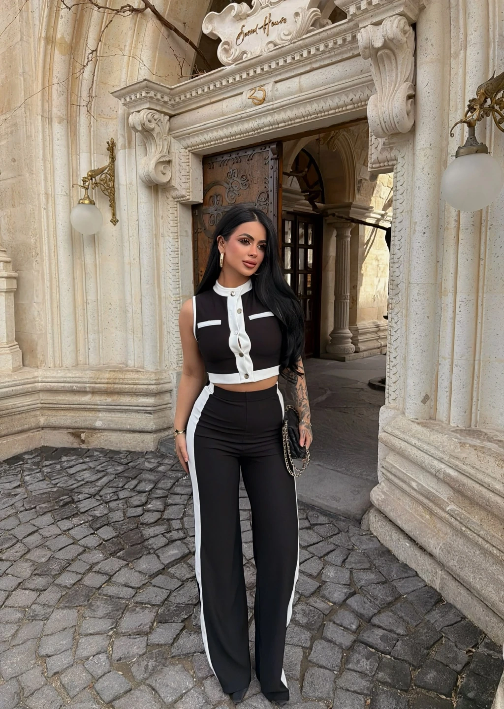 Siyah Yaka Aksesuarlı İkili Takım