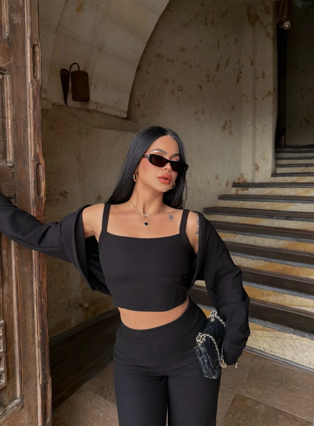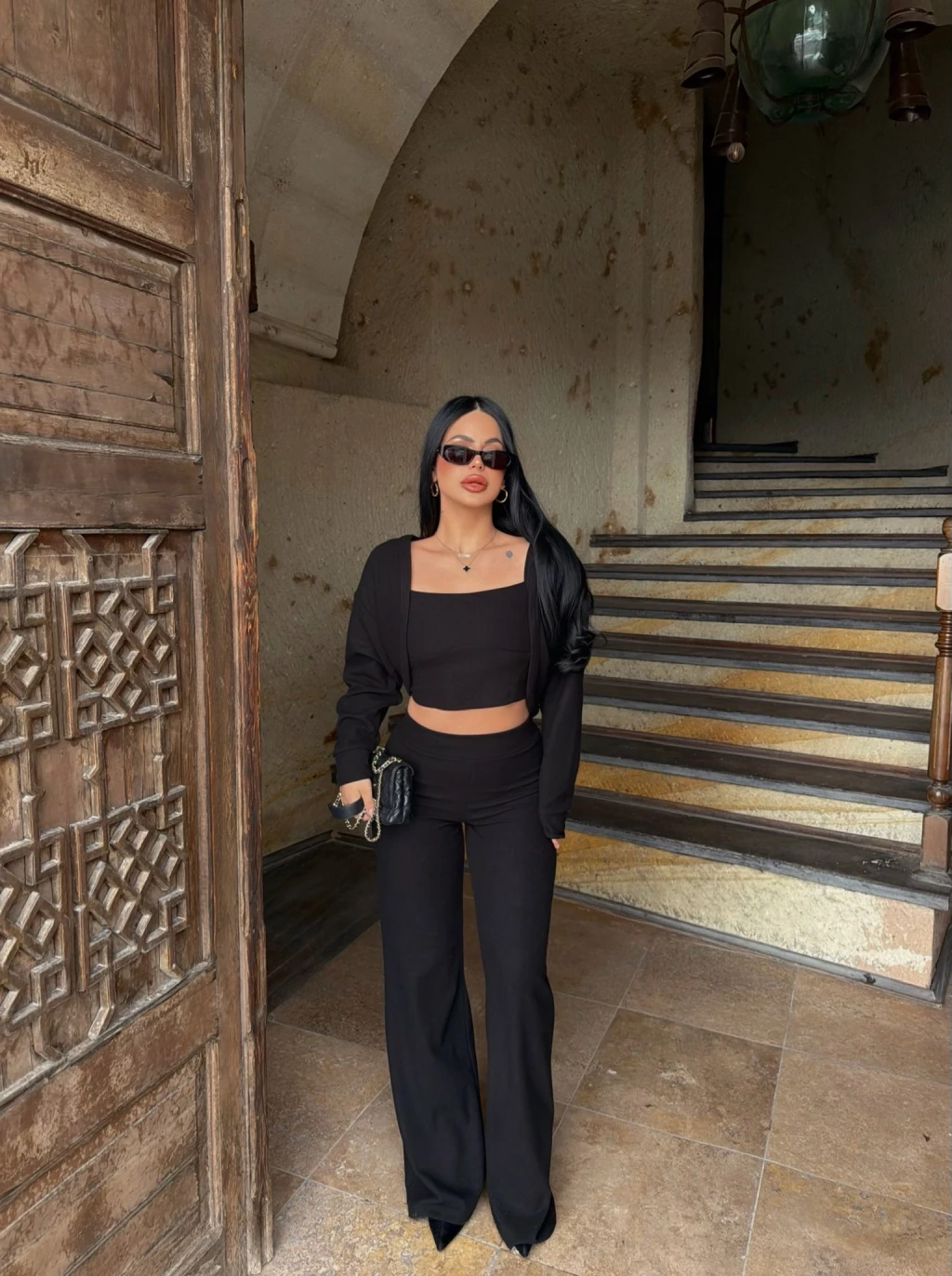 • Örme hırka ile yelek ve pantolondan oluşan üçlü takımdır.