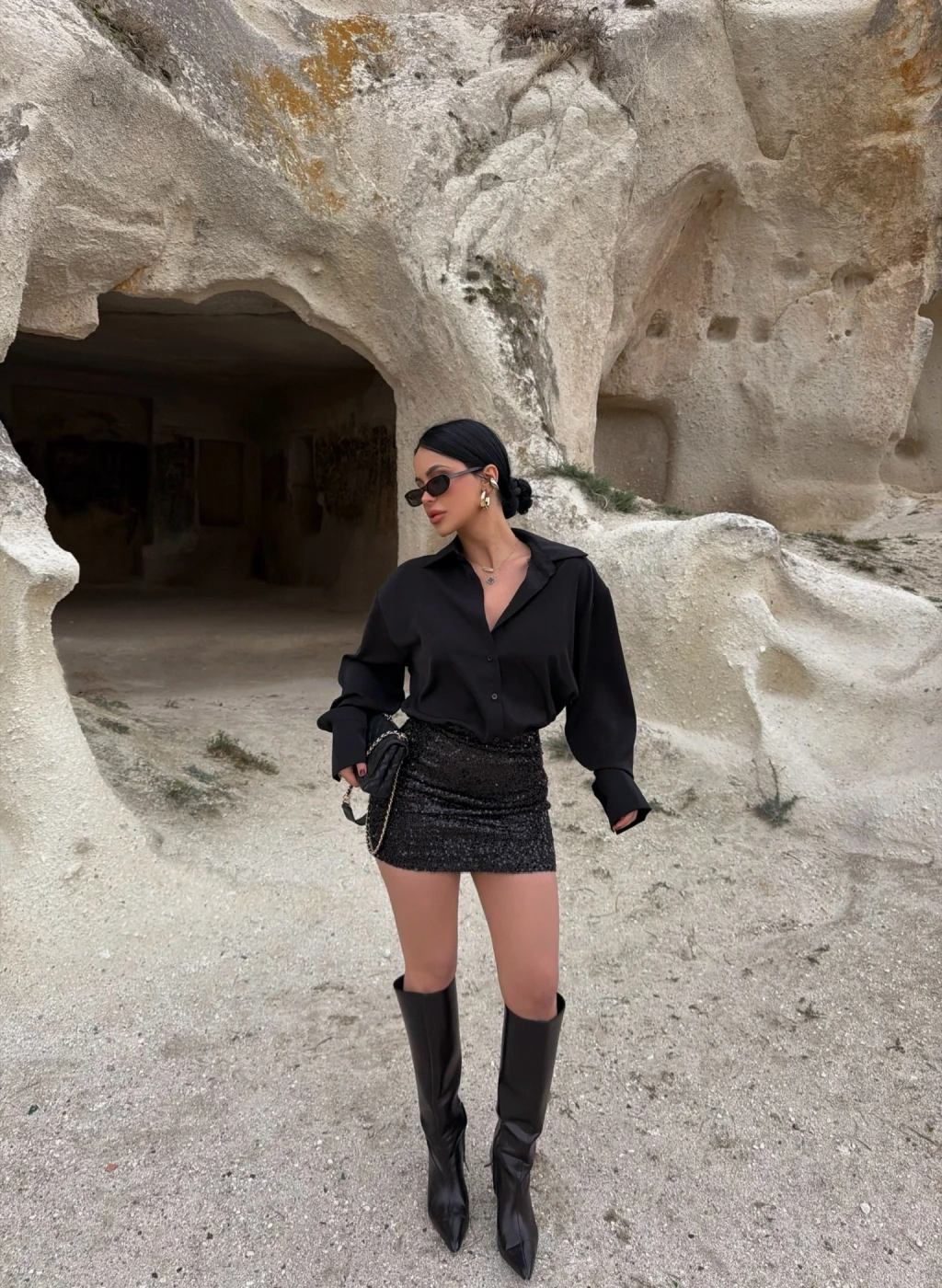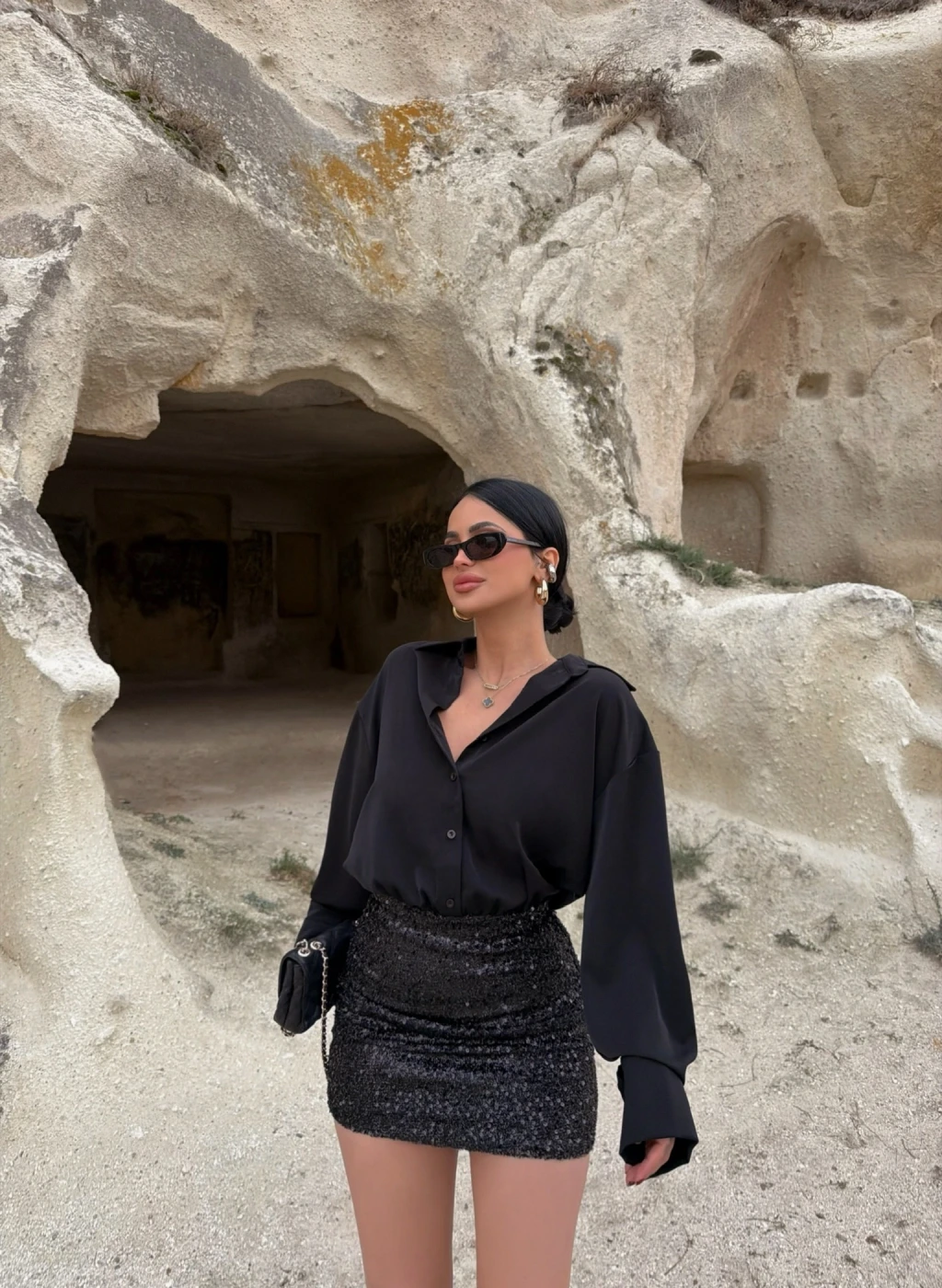 Kırmızı Butik'in şık ve dikkat çekici tasarımıyla öne çıkan Payetli Gömlek Elbise, gardırobunuzun vazgeçilmezi olmaya aday! Hem şık davetlerde hem de özel günlerde şıklığınızı konuşturacak bu mini elbise, stilinize şıklık ve zarafet katacak.