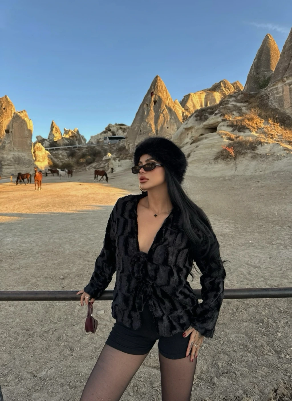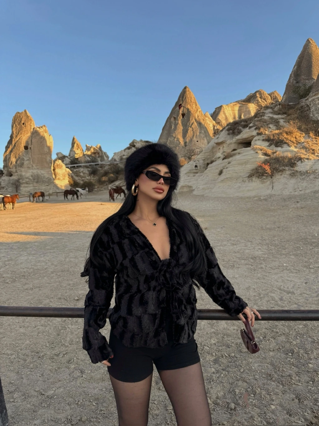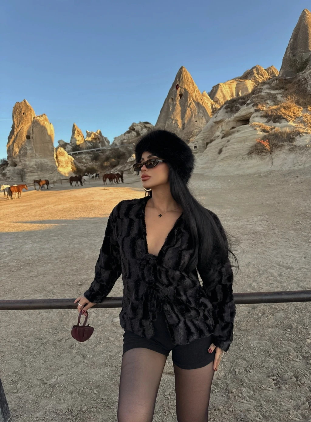 Plush Kabartmalı Hırka, soğuk havalarda sizi sıcacık tutarken şıklığınızdan ödün vermemenizi sağlar.