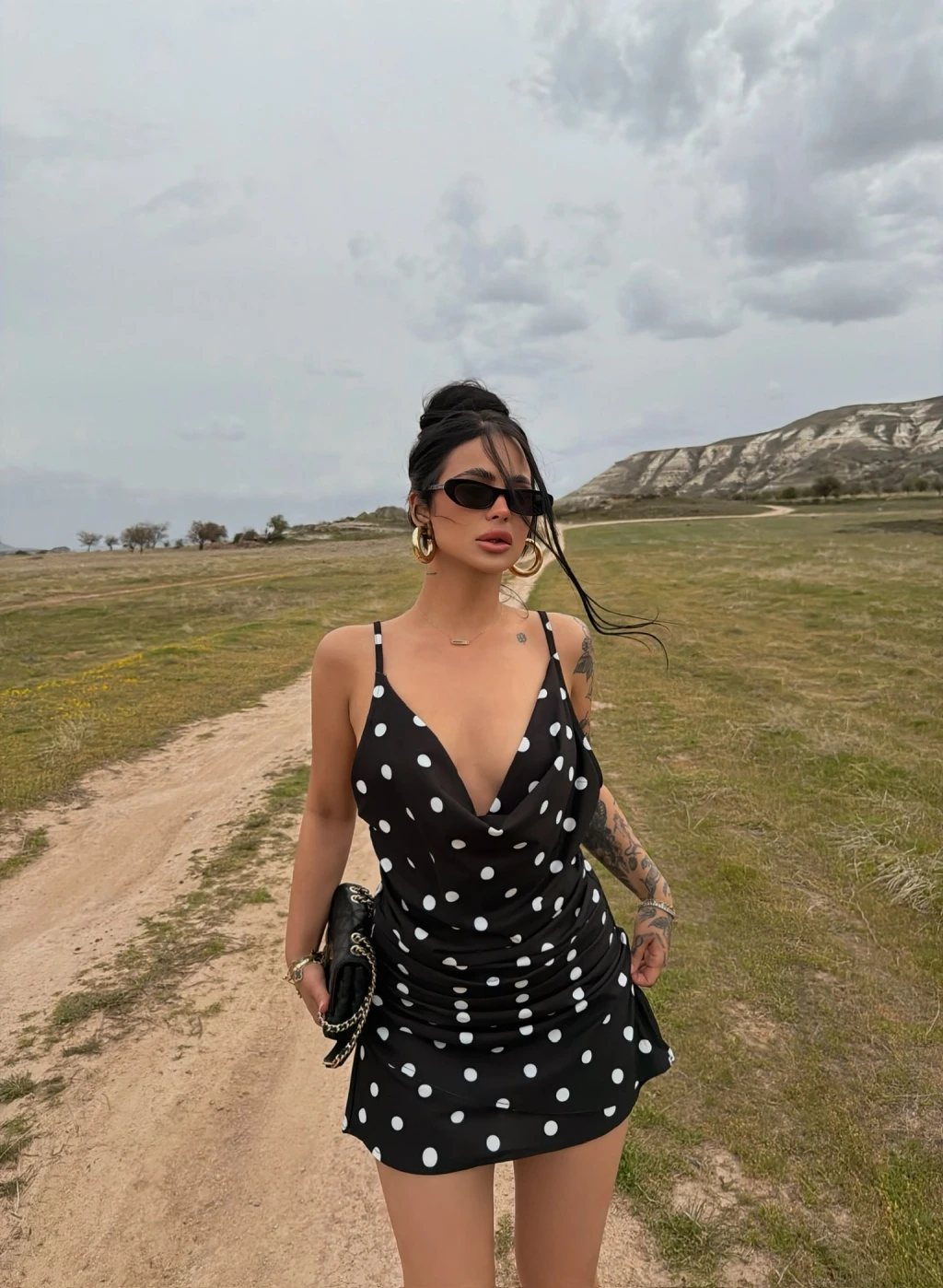 Şıklık ve feminenliği bir arada sunan Kırmızı Butik Puantiyeli Degaje Elbise ile özel zamanlarınızda fark yaratacaksınız.