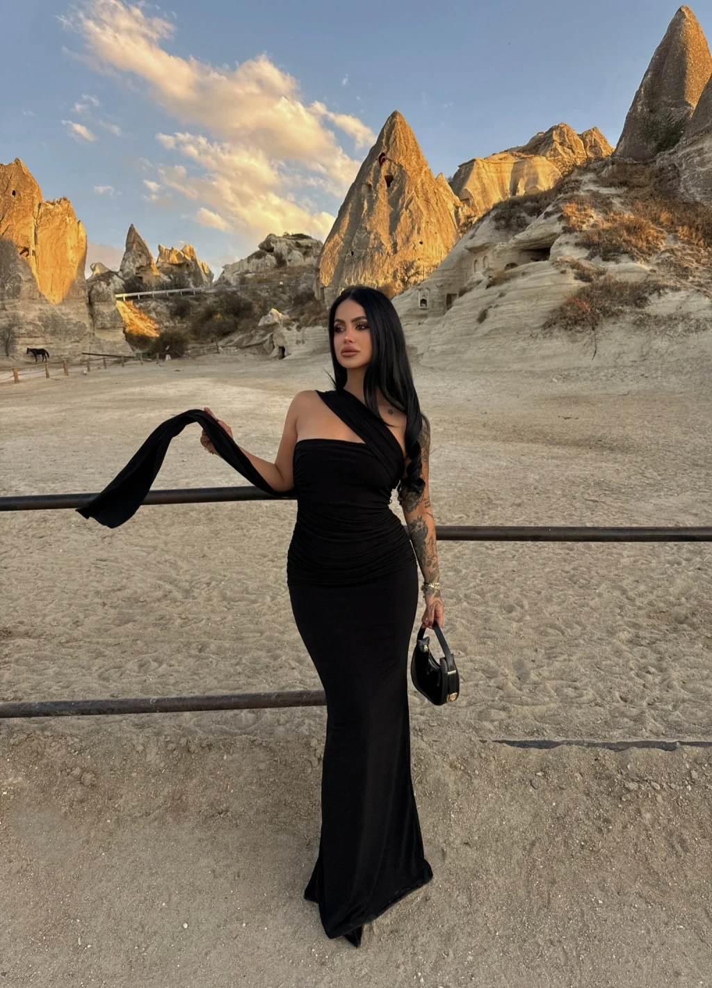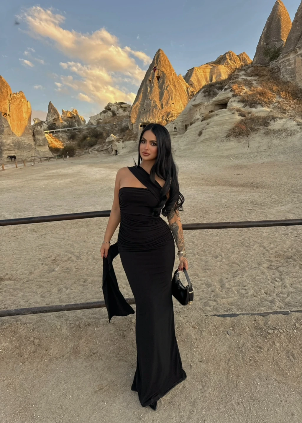 Şal Detay Maxi Elbise ile tarzınızı ve şıklığınızı ön plana çıkarabilir, her ortamda göz kamaştırabilirsiniz.